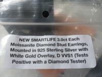 1309 SmartLife 3.0Ct Moissanite Diamond Stud Earrings (Unused)