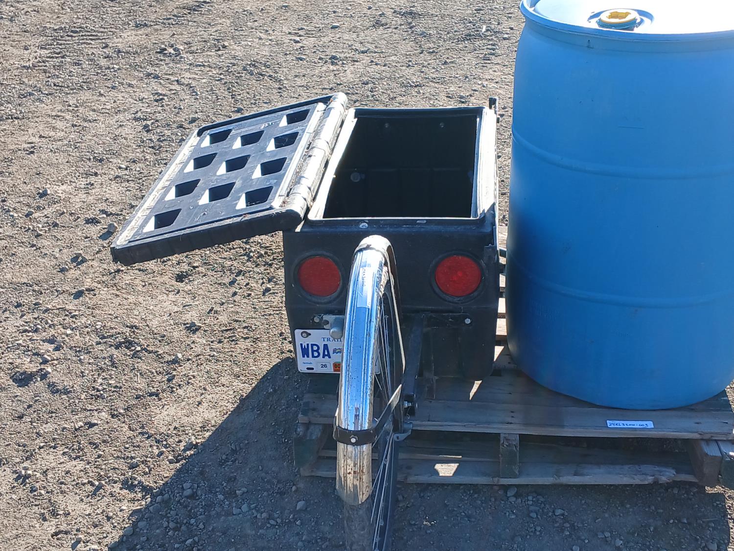 1633 Bike Trailer, 50 G Plastic Drum, Fence Post Pounder