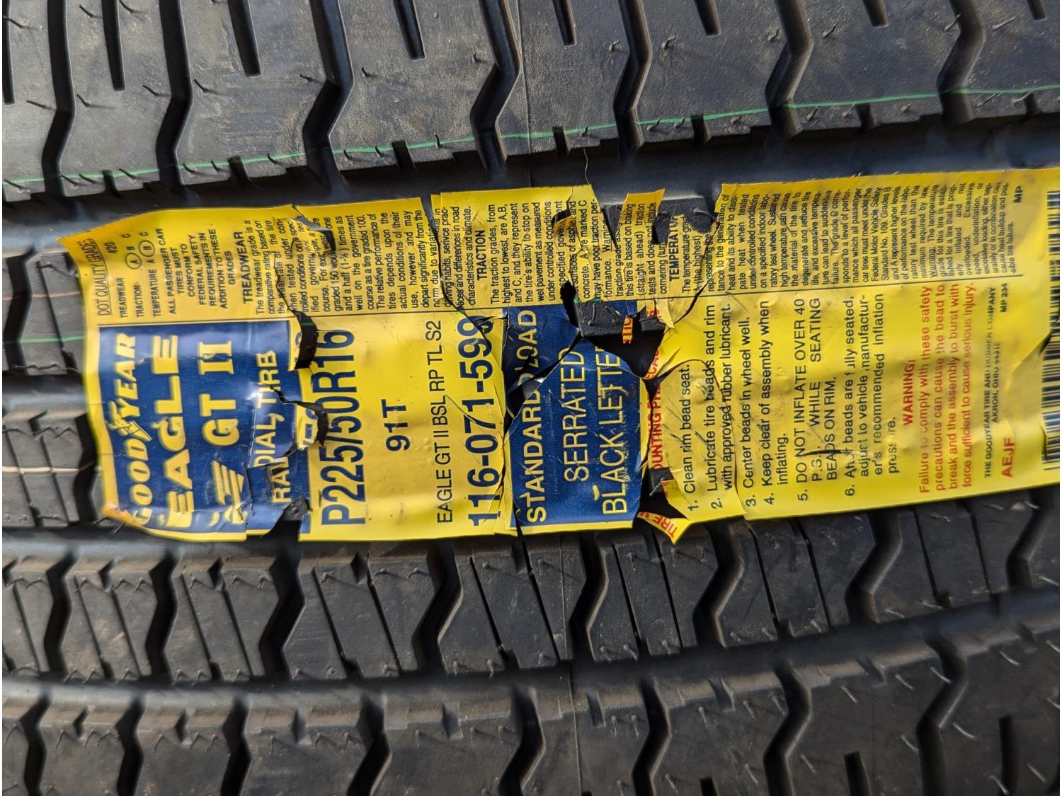 1348 Goodyear Eagle GTII (4) 225/50/R16 M+S (Unused)