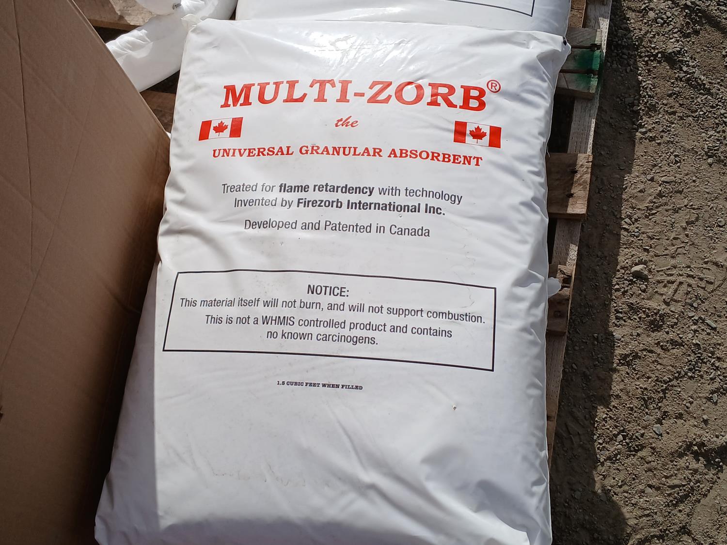(20) 3 inch x8 ft white OIL ONLY sock absorbers, (3) Multi-Zorb Flame resistant universal granular absorbent.