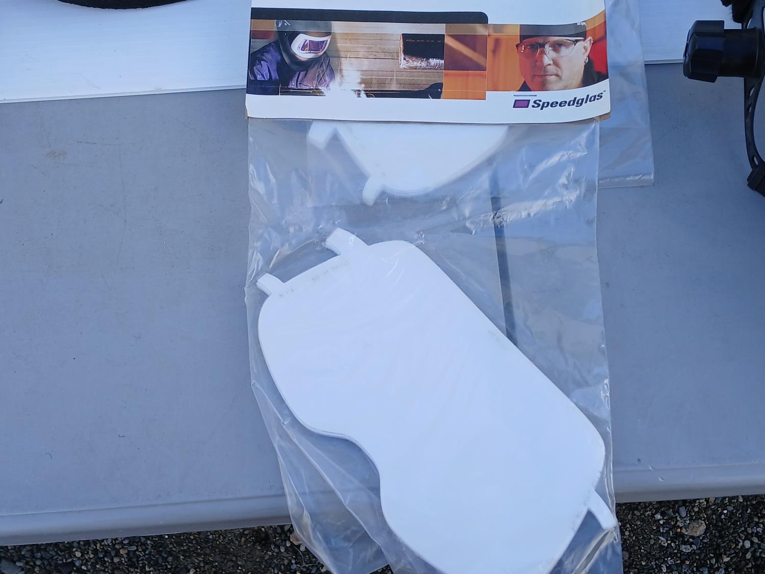 (6) Head Gear Inc Air Duct, (6) 3 M Speed glass wide view clear grinding visor, (5) Honeywell Fibre Metal 1-CR Head gear, (6) Dynamic Cap mount face shield brackets.