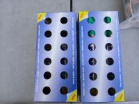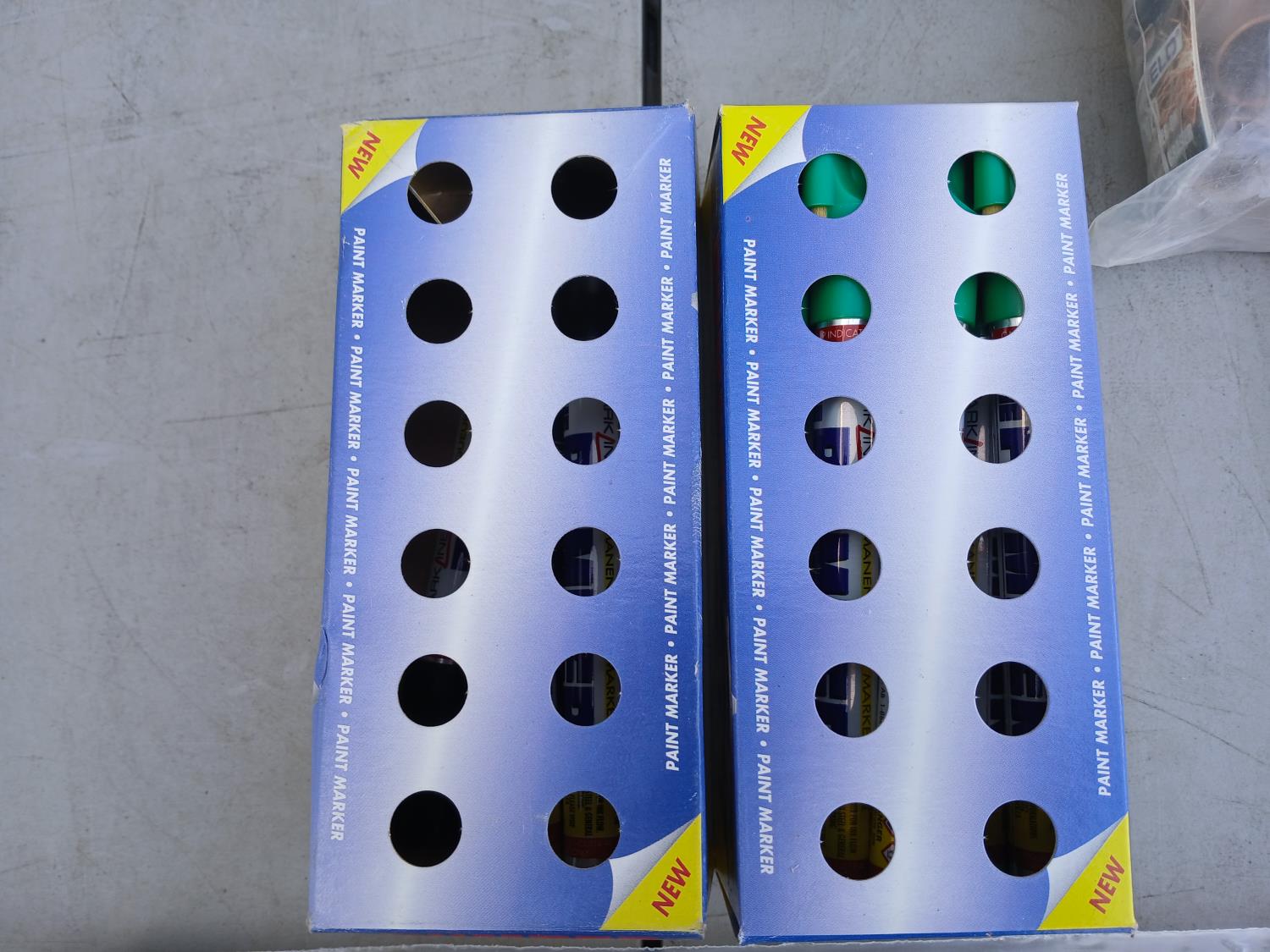 (12) 50 amp tester clips, (48) magnifying 2 inch lenses, (11) Filter plates, (26) Cable Lug (Solder on), (100) Cable Ties, (1)Erwin Vise grips, (7) Milwaukee Thermocouples (K-type), (9) PTA Canada pliers, (10) red 24 inch Bungee cords, (16) Pumper rechargeable paint markers, (1) Cooler rack, (1) High Visibility Coveralls- size 46.