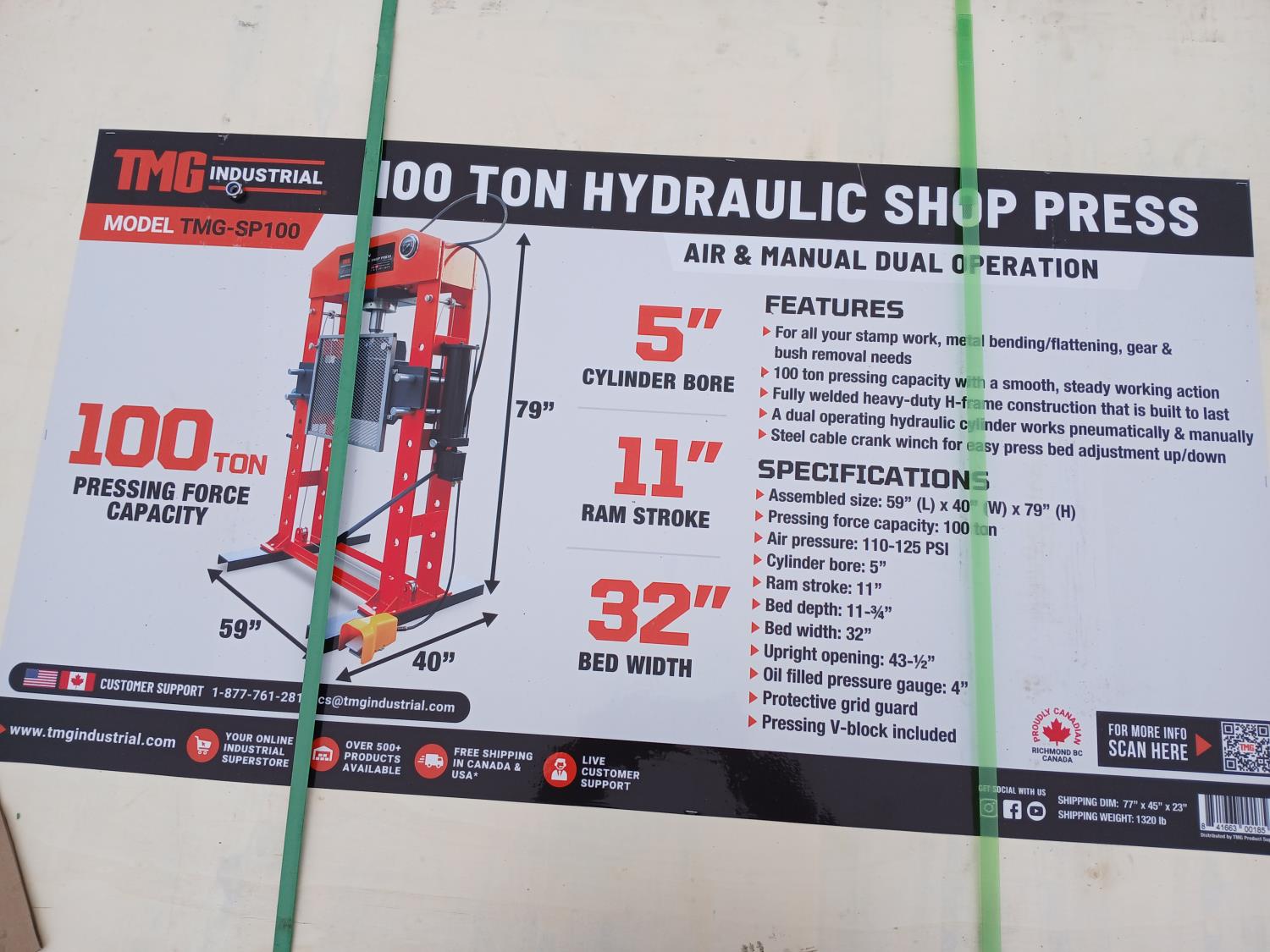 1928 TMG Industrial TMG-SP100 100 Ton Capacity Hydraulic Shop Press