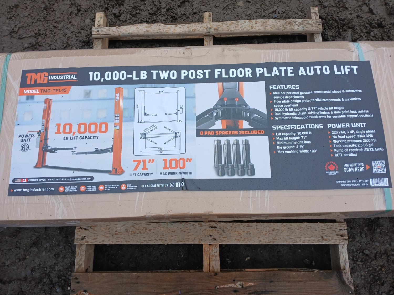 1951 TMG Industrial TMG-TPL45 10,000-lb Two Post Floor Plate Auto Lift (Unused)