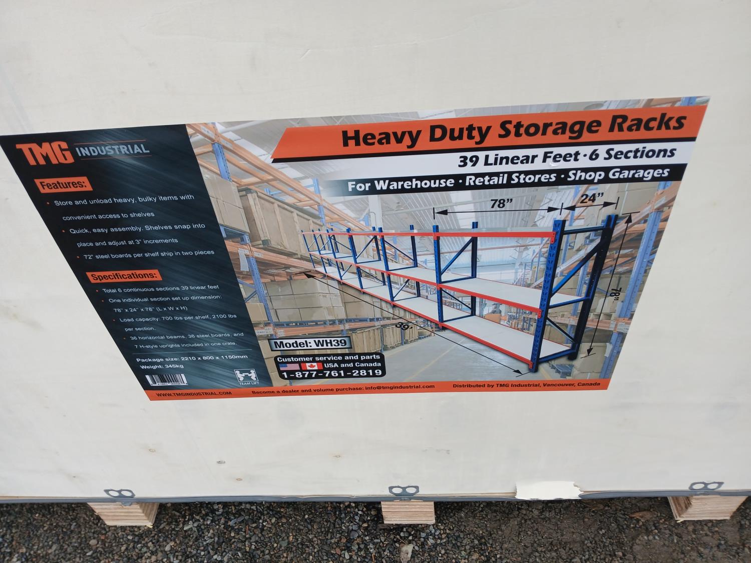 1973 TMG Industrial TMG-WH39 39 Ft Metal Garage/Workshop Storage Shelves (Unused)