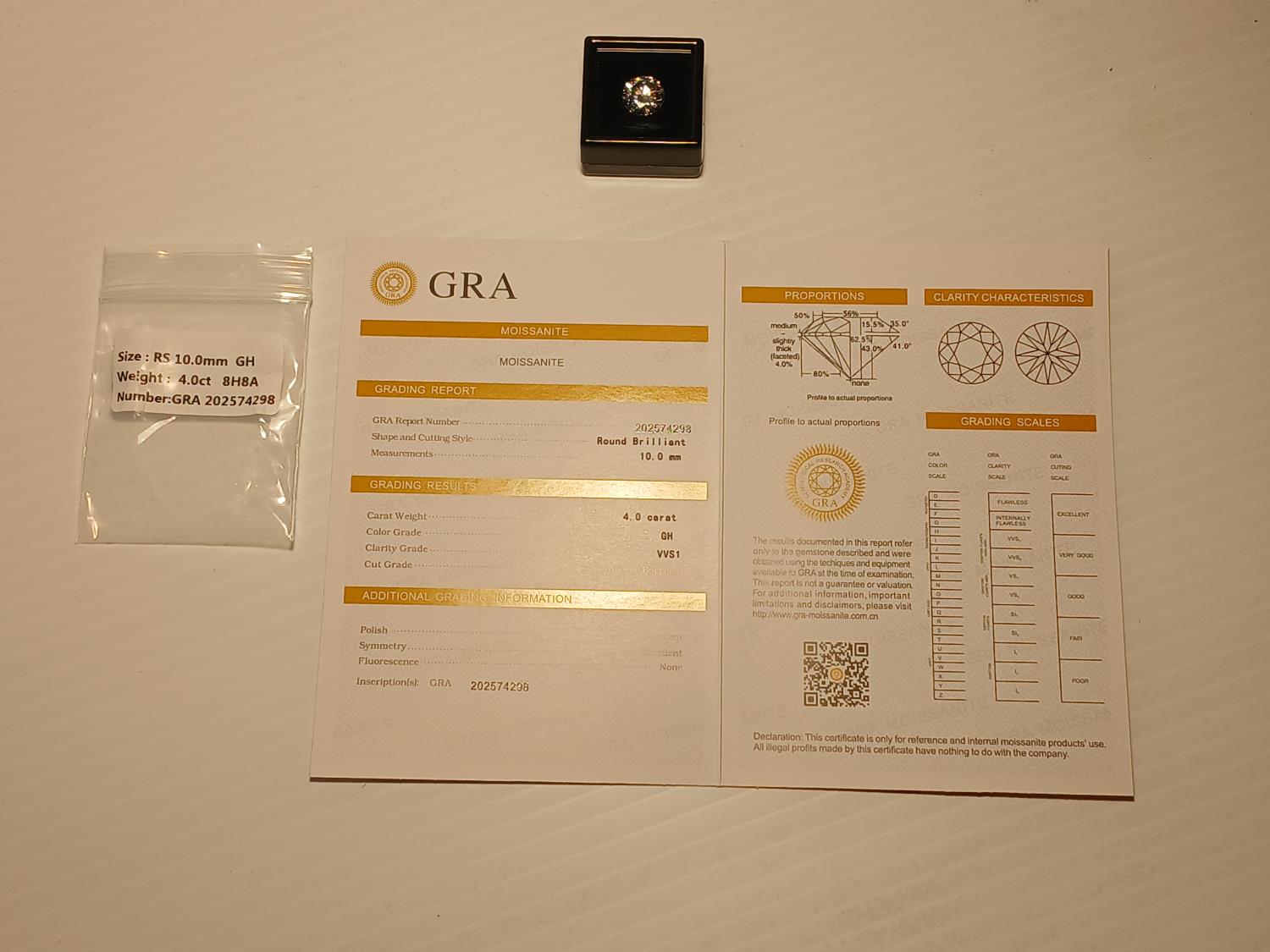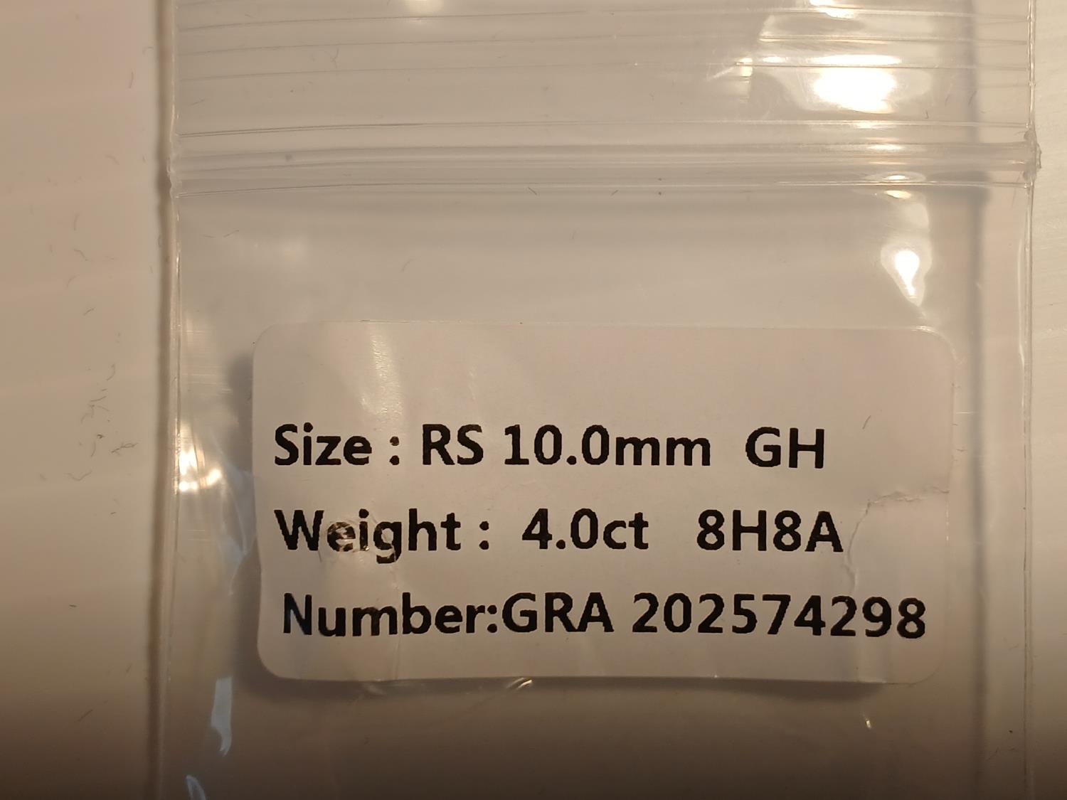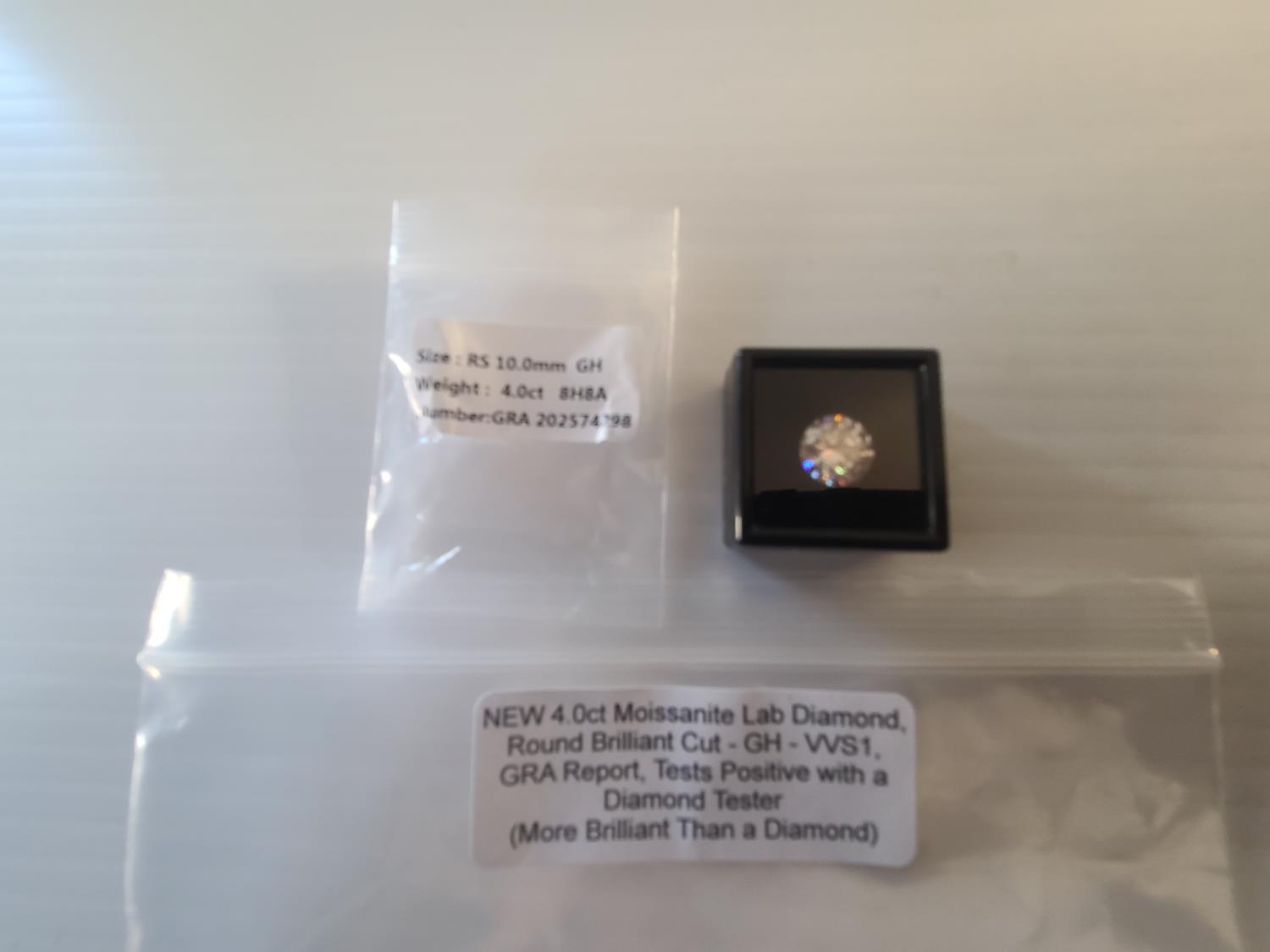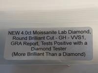 1898 Carsation Designs 4.0Ct Moissanite Lab Diamond, Round Brilliant Cut (Unused)