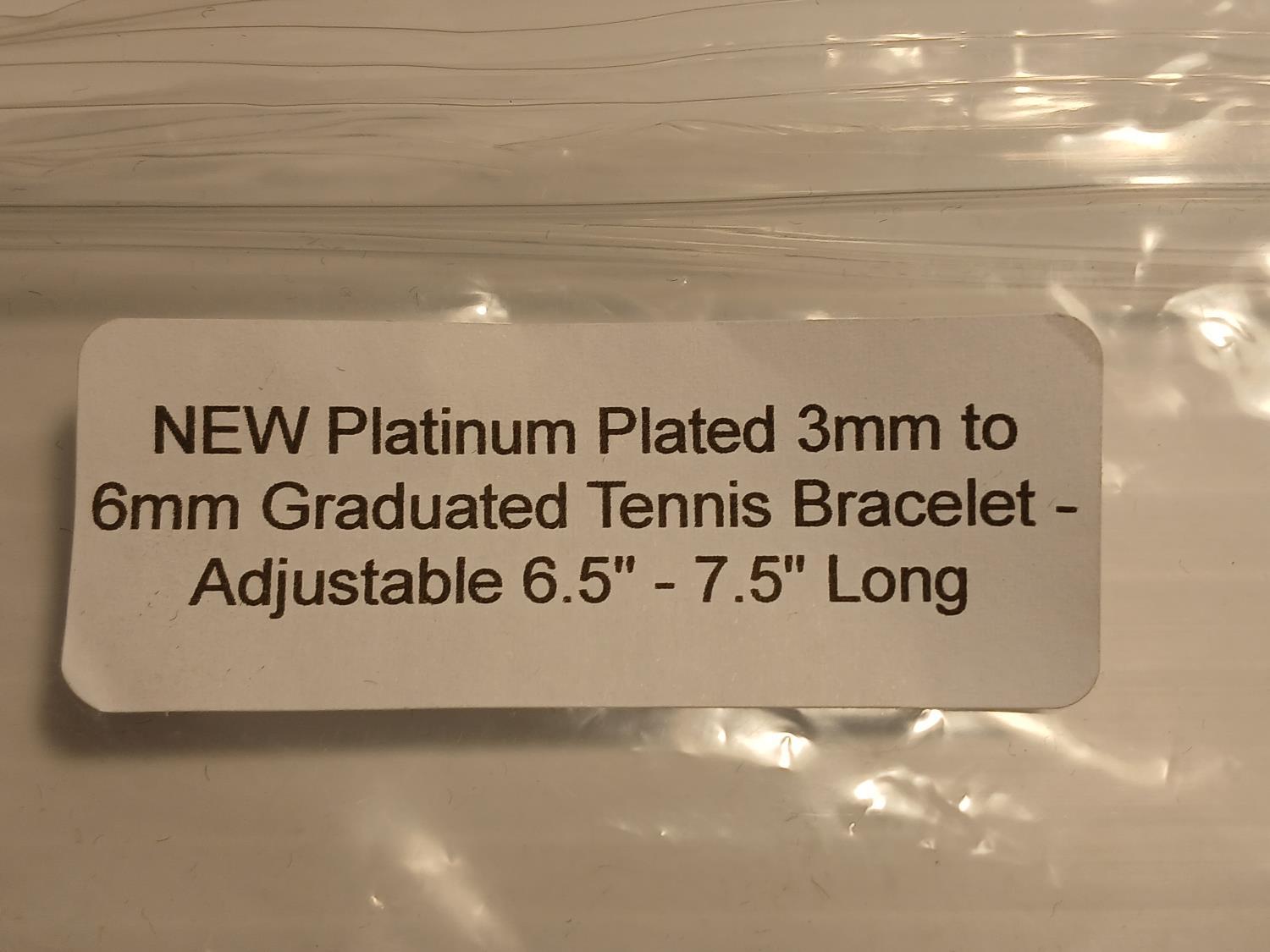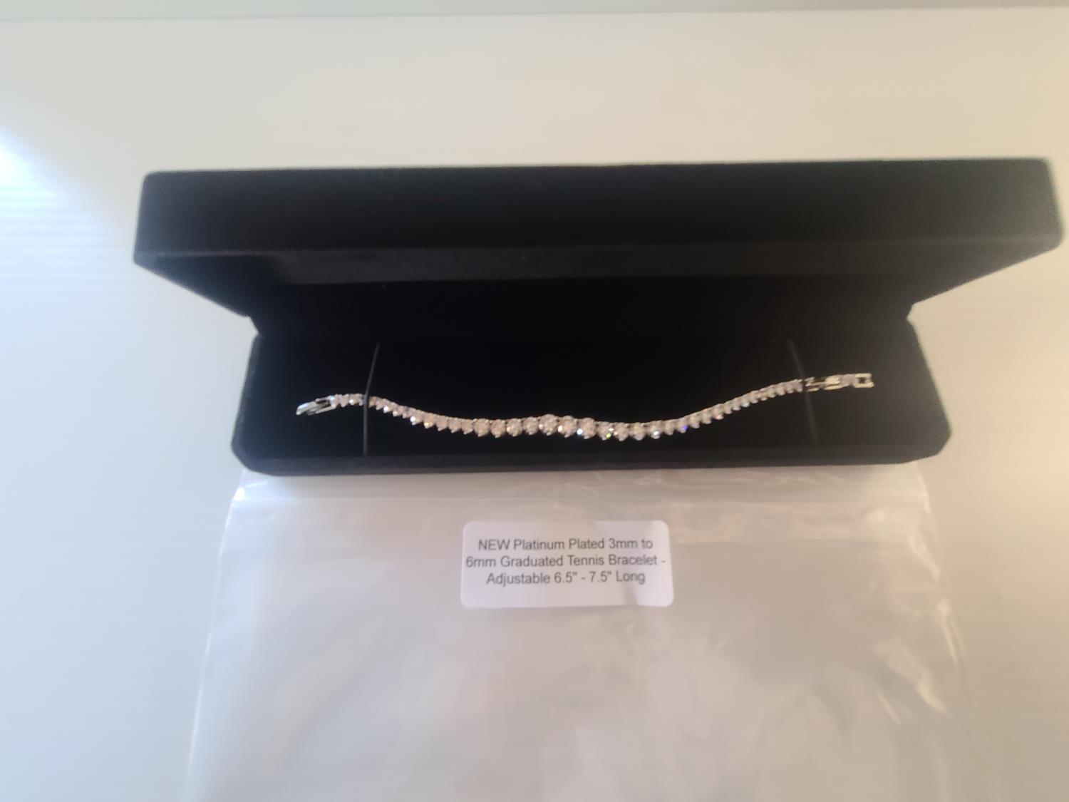 1881 Carsation Designs Platinum Plated 3 mm to 6 mm Graduated Tennis Bracelet (Unused)