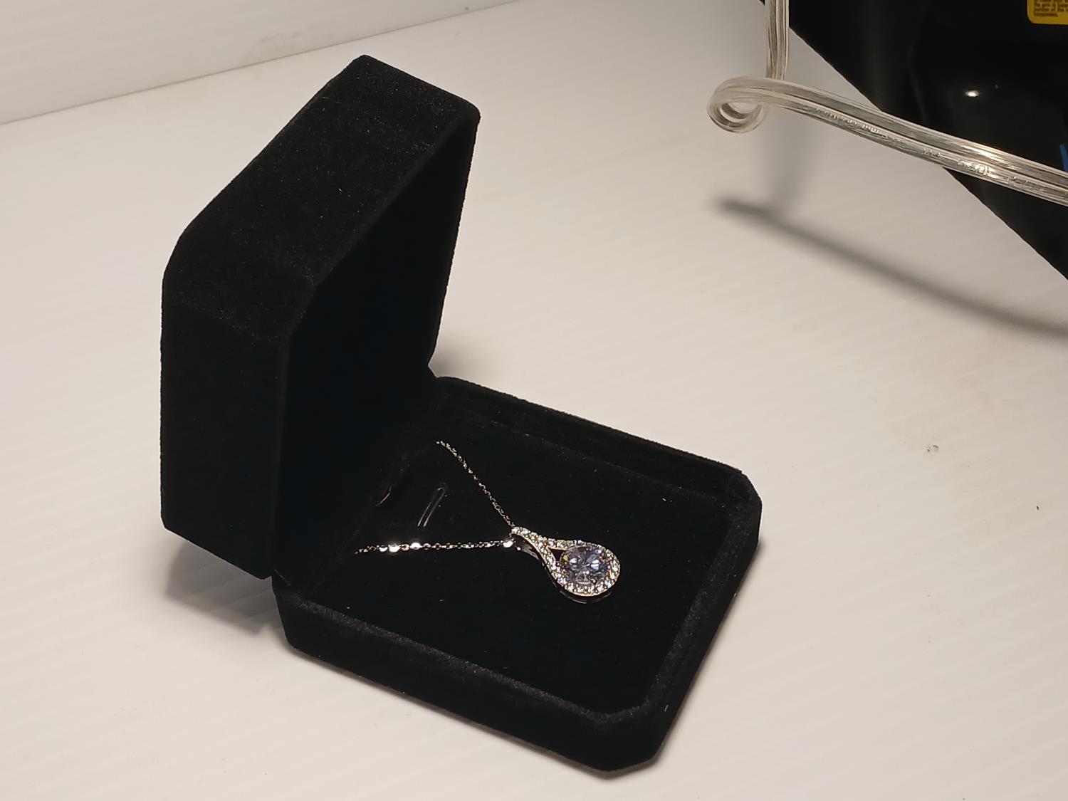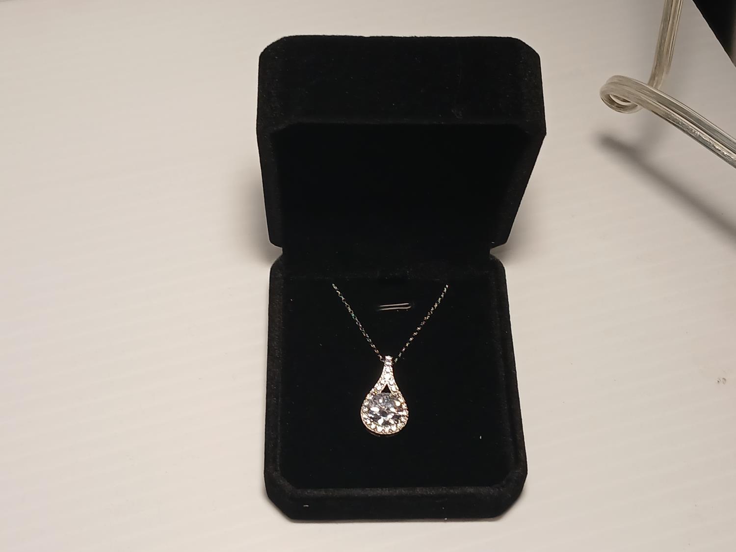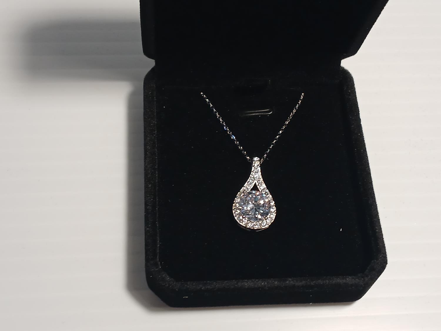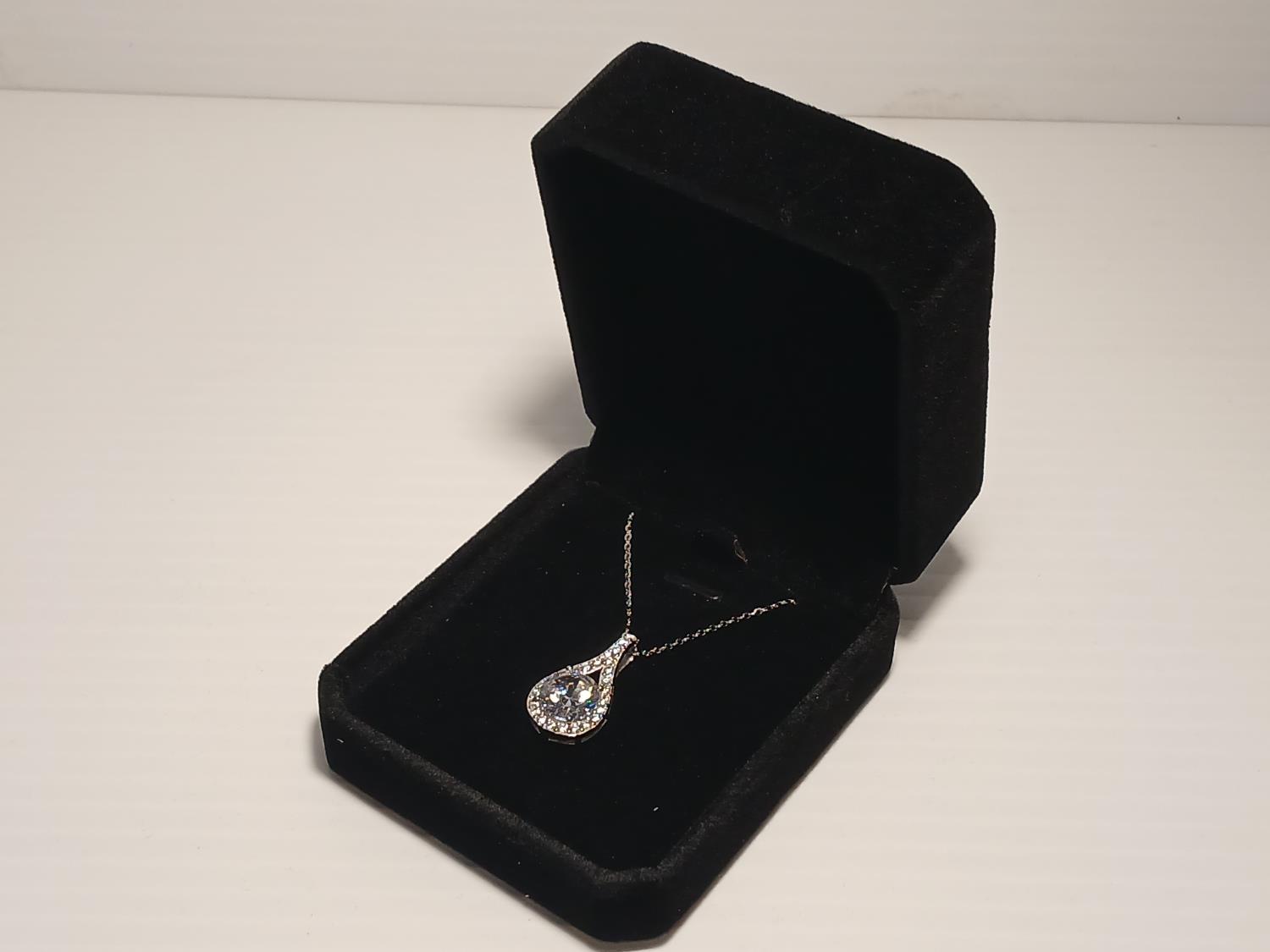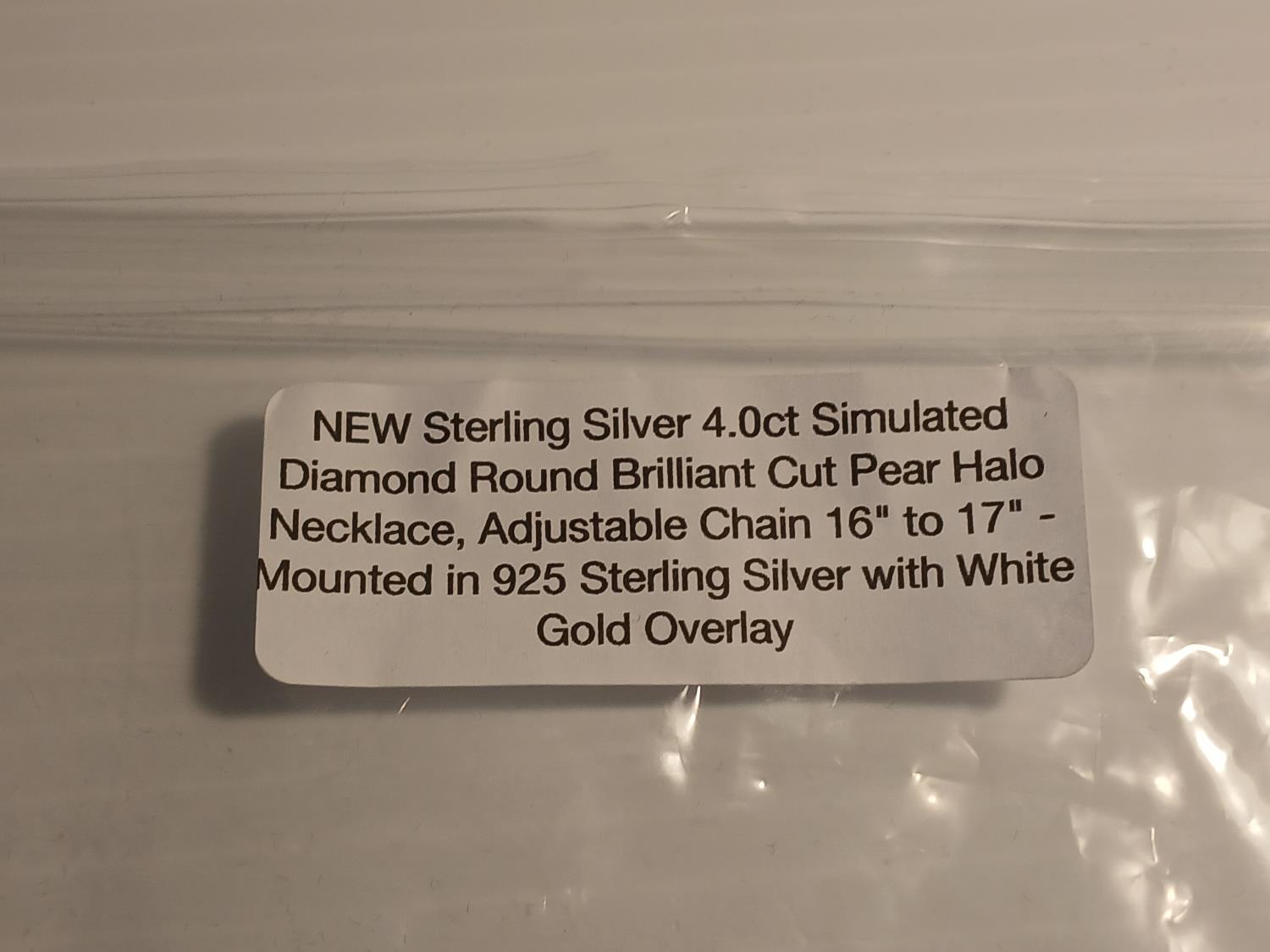 1888 Carsation Designs Sterling Silver 4.0Ct Simulated Diamond Round Brilliant Cut Pear Halo Necklace (Unused)