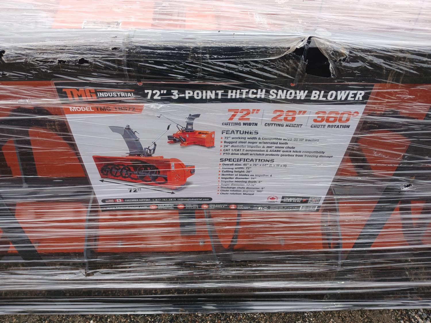 1945 TMG Industrial TMG-TBS72 72 Inch 3 Point Hitch Snow Blower (Unused)