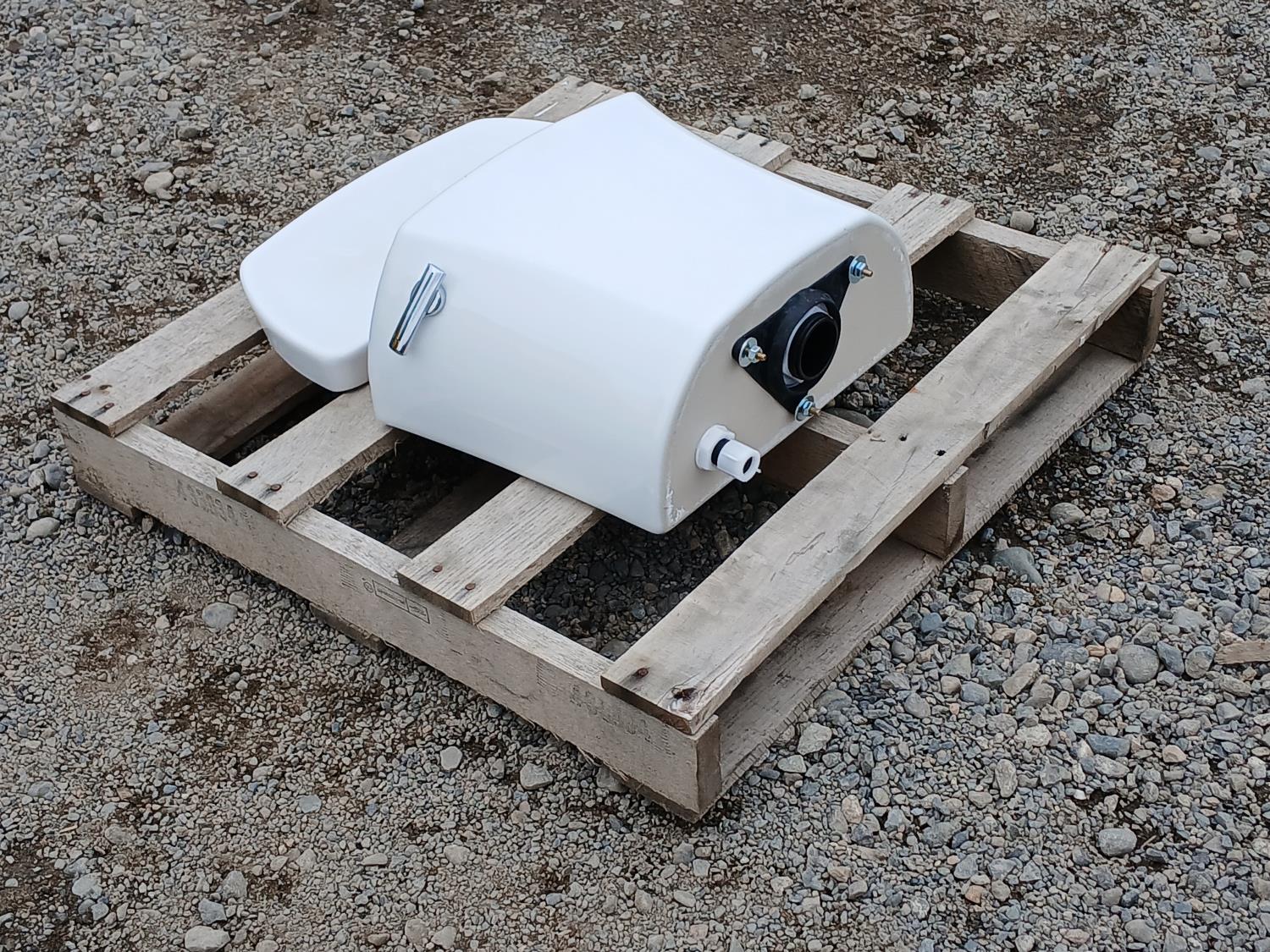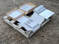 (1) Kohler unlined toilet tank. (white porcelain), (3) piece box of 3/16 inch ring sections, (1) 4 ring catalogue rack, (1) 6 section catalogue rack.