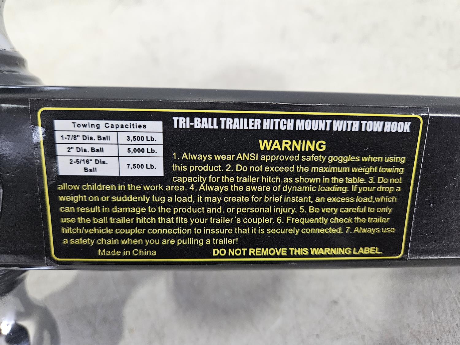 1-7/8 inch, 2 inch, and 2-5/16 inch balls on triple hitch