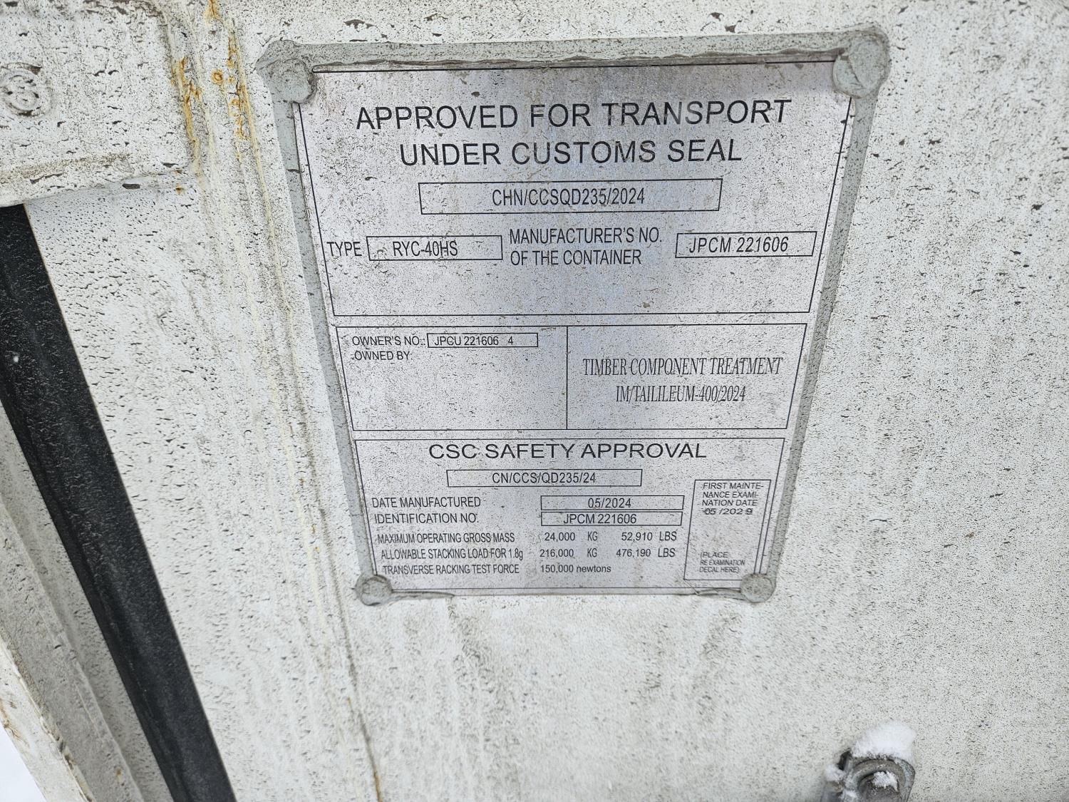 3220 2024 40 Ft High Cube Shipping Container (Unused)