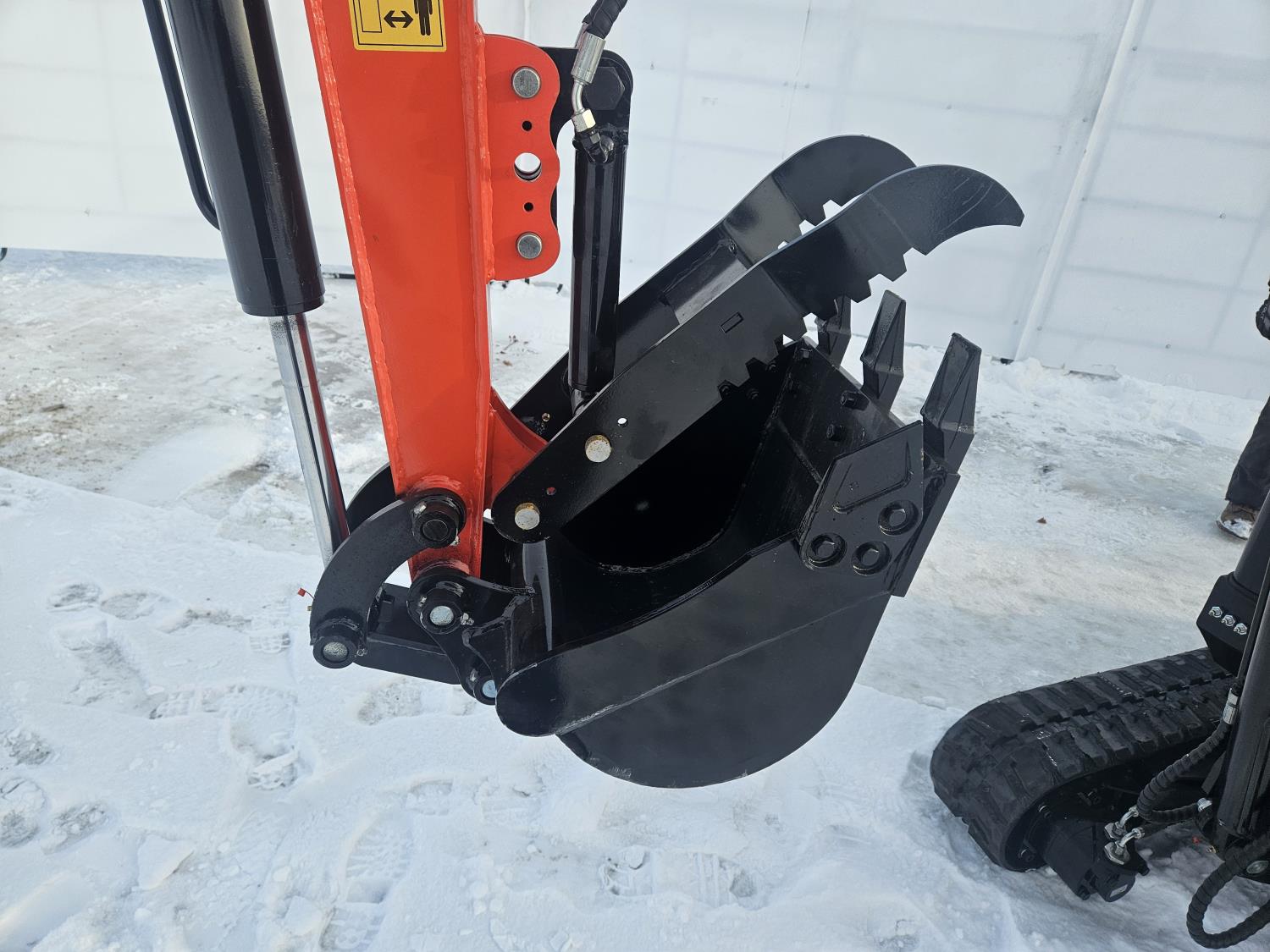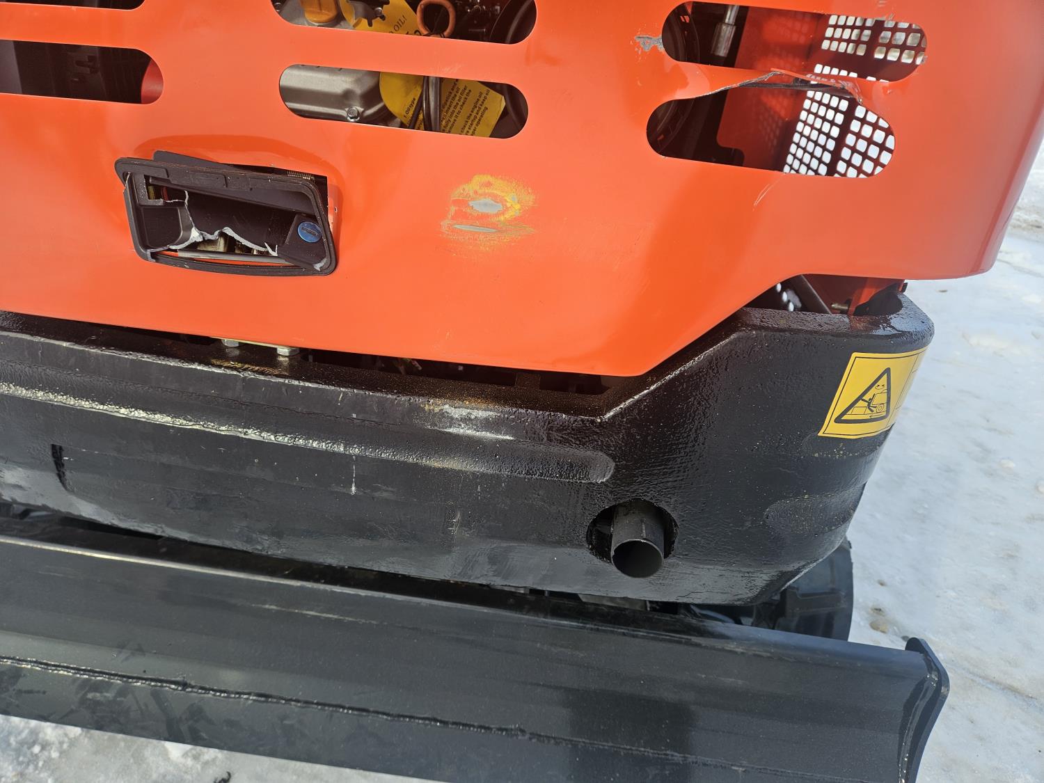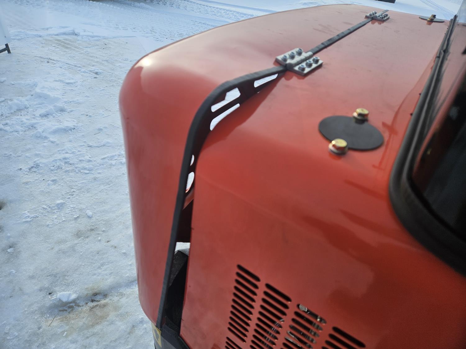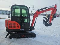 (Shipping Damage), 29 HP, gasoline engine with EPA ,16" bucket, 41" stick, 9" rubber tracks, backfill blade, off-road undercarriage expansion, Hydraulic Thumb , Cab ,
