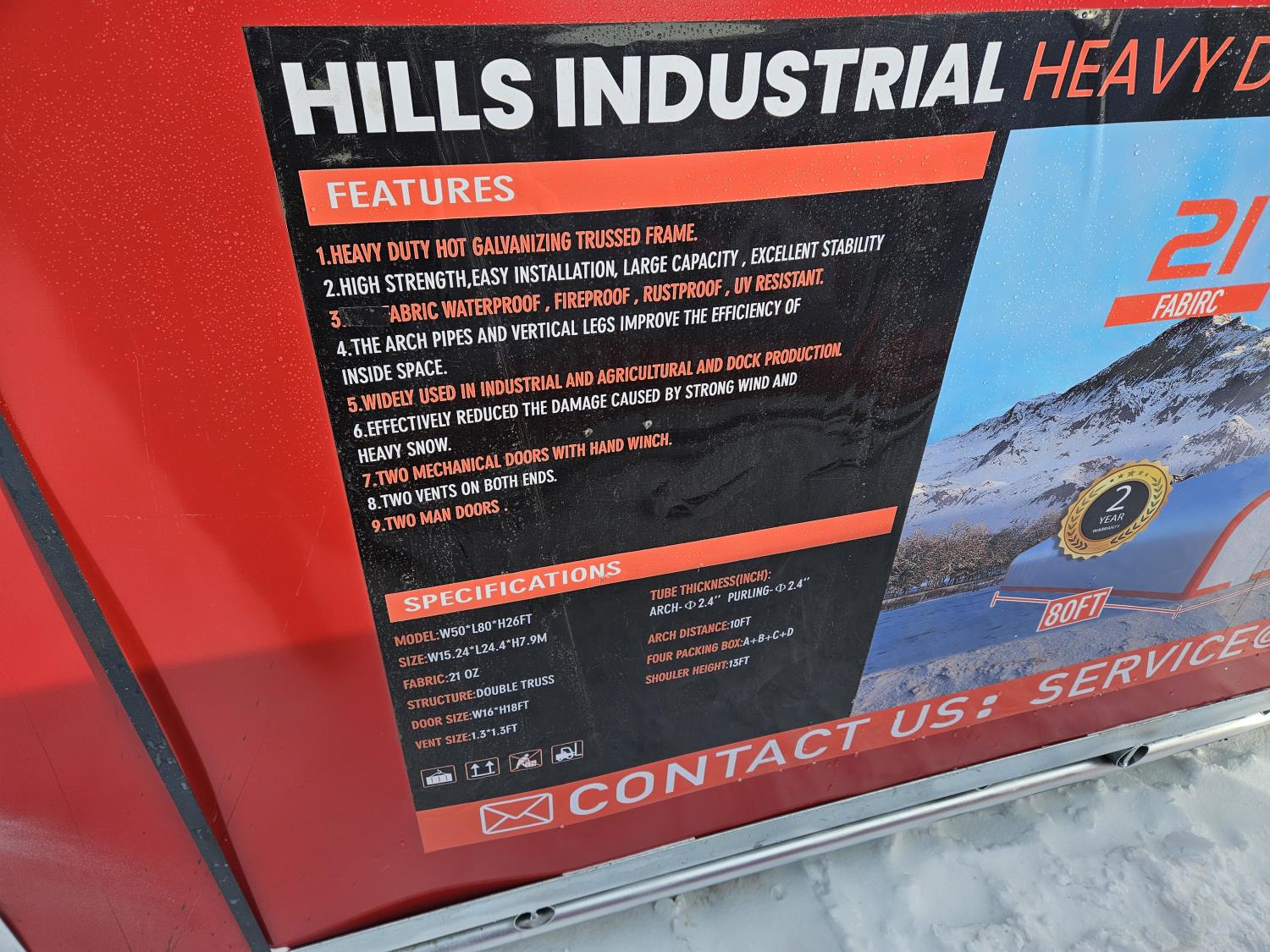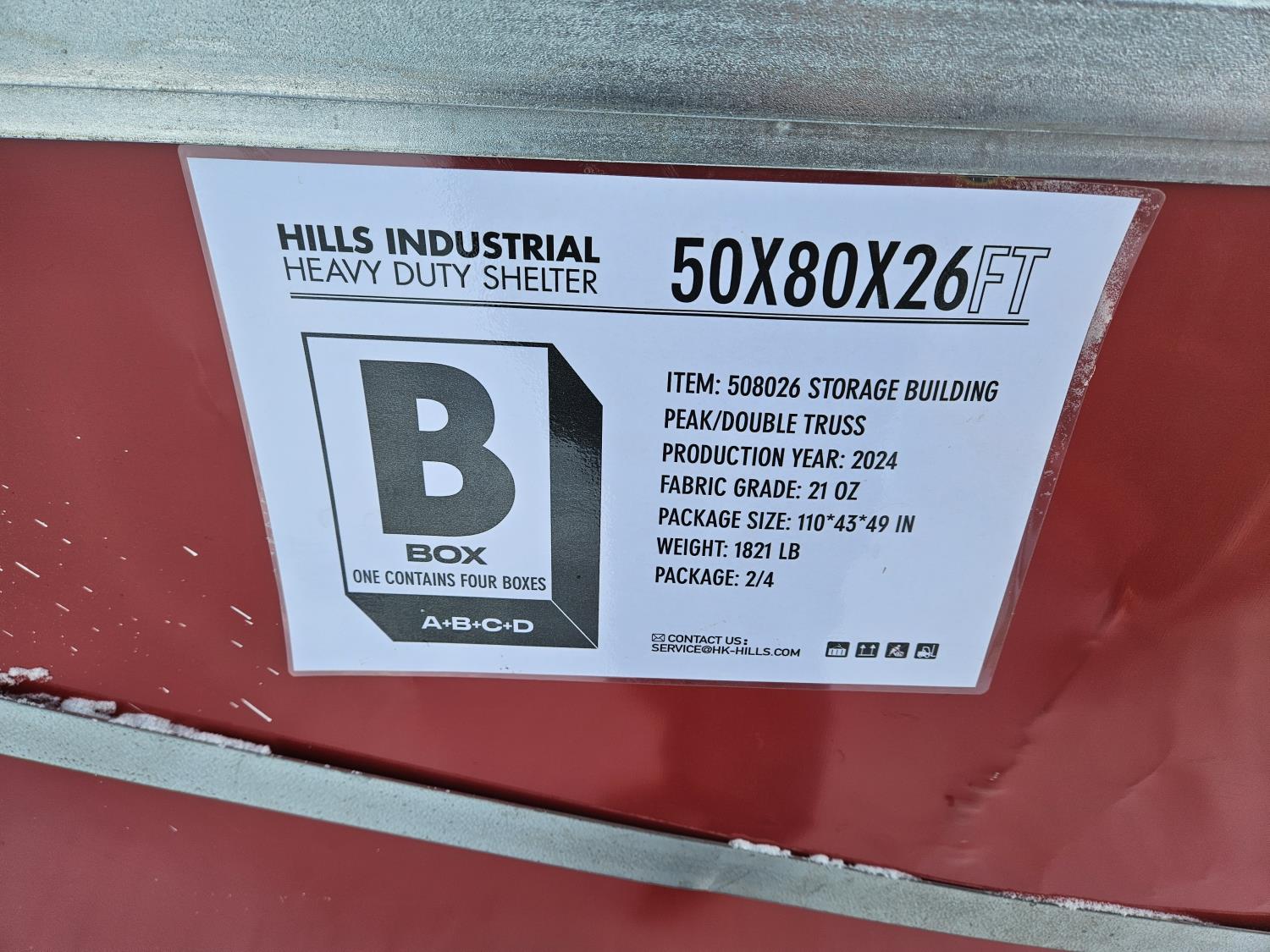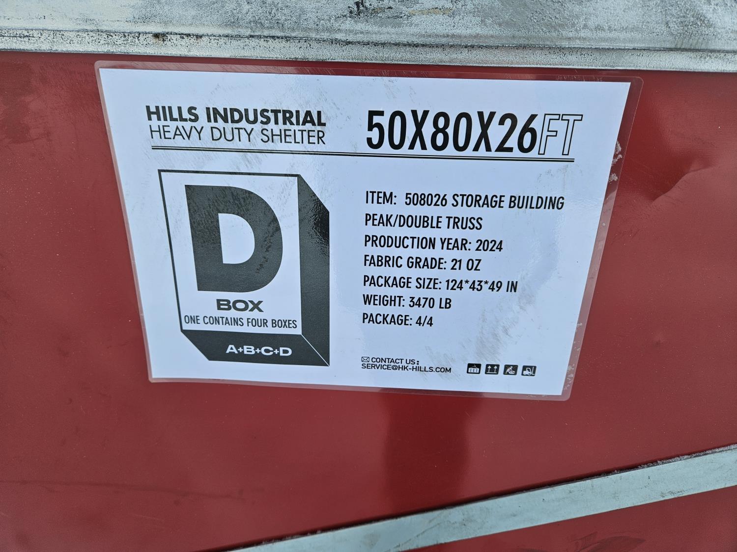 3047 Hills Industrial 50 Ft W X 80 Ft L X 26 Ft H Heavy Duty Shelter (Unused)