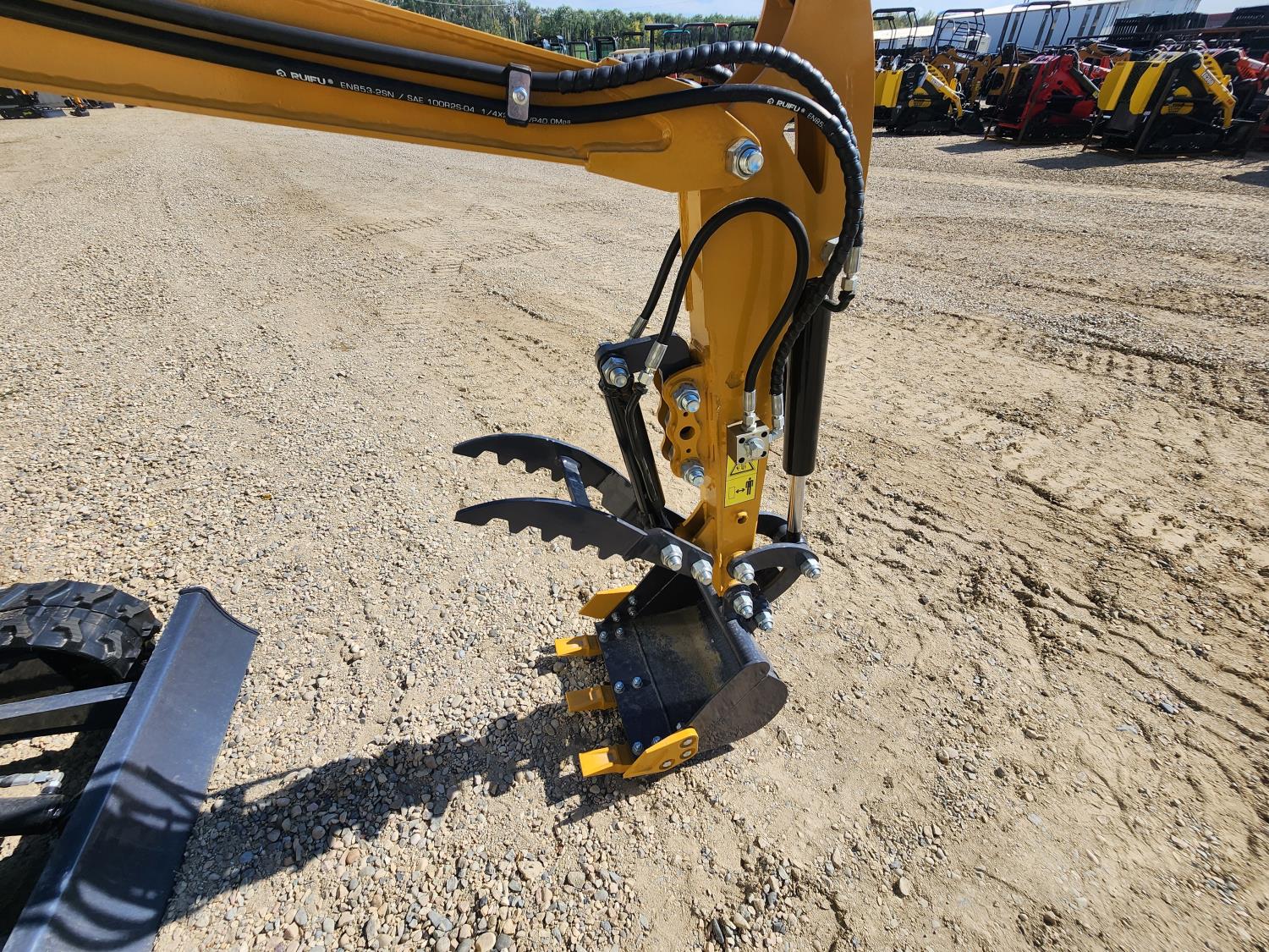 Enclosed cab, gas engine, 17 inch dig bucket, hydraulic thumb, backfill blade, machine width 37" , 7 inch rubber tracks