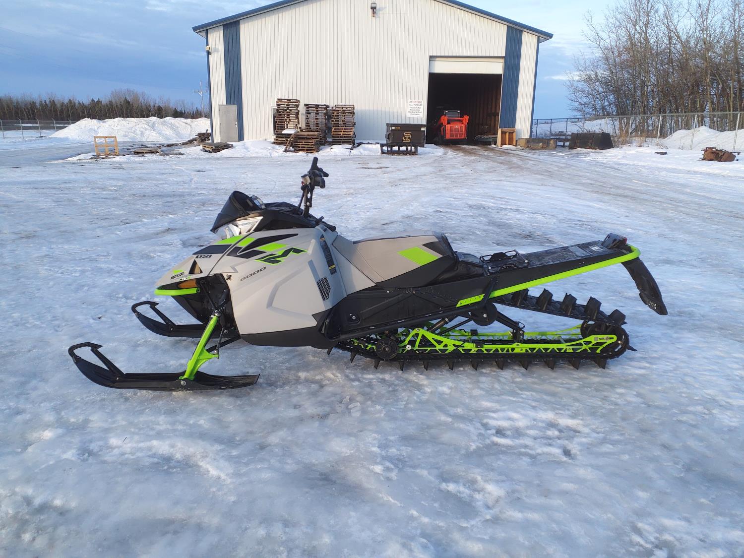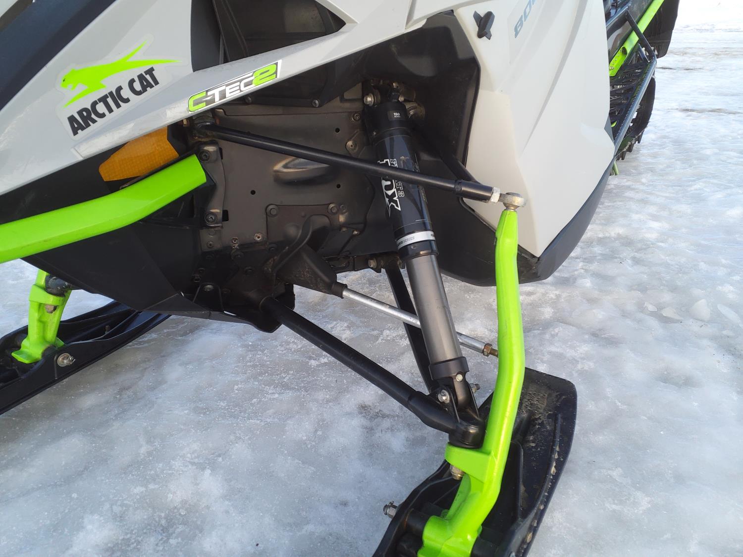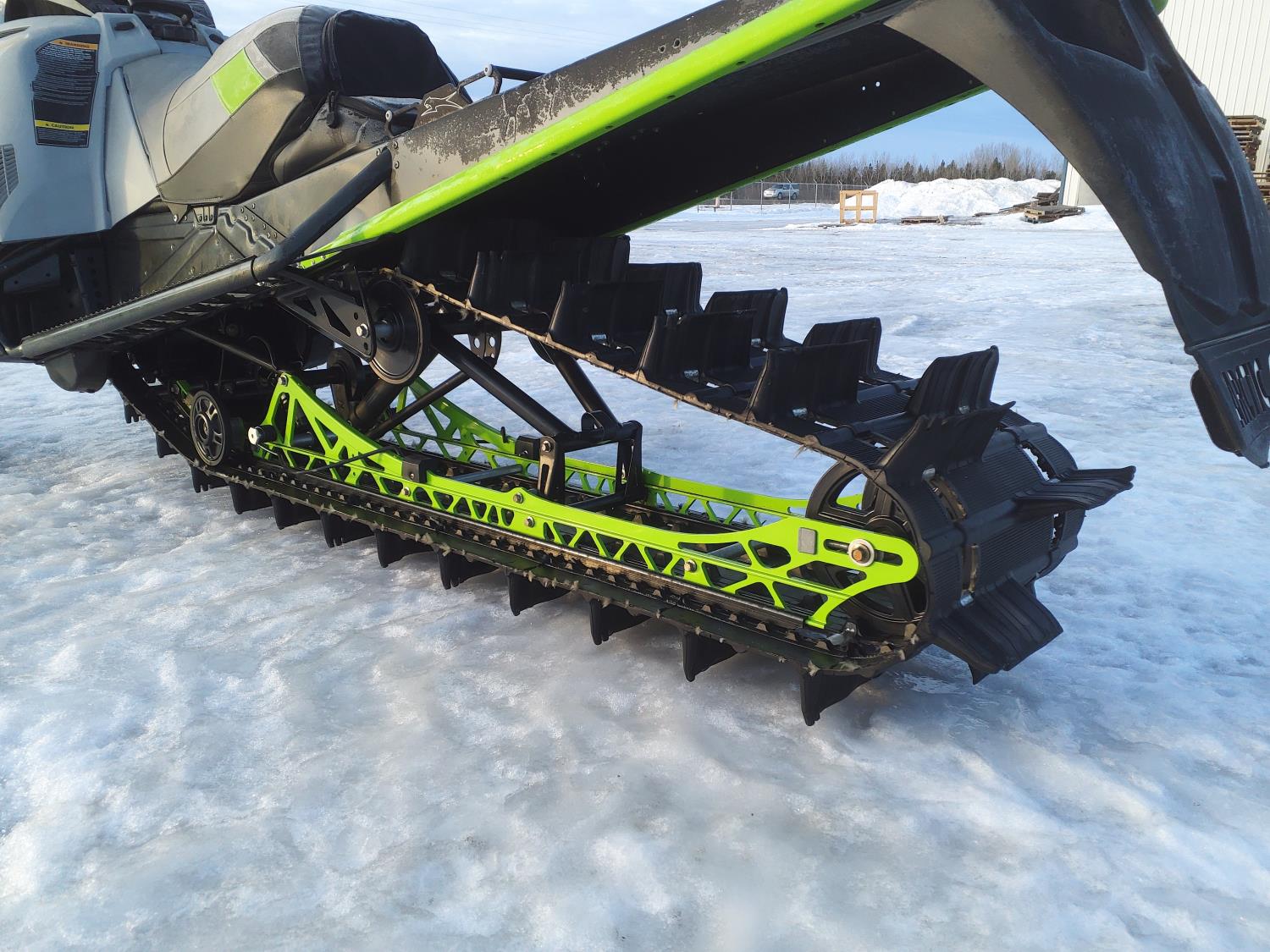 800 cc Arctic cat 2 cylinder fuel injected 2 stroke liquid cooled engine, reverse, windshield, hand and thumb warmers, high rise handlebars, 162 inch long track, 15 inch wide track, 3 inch paddles