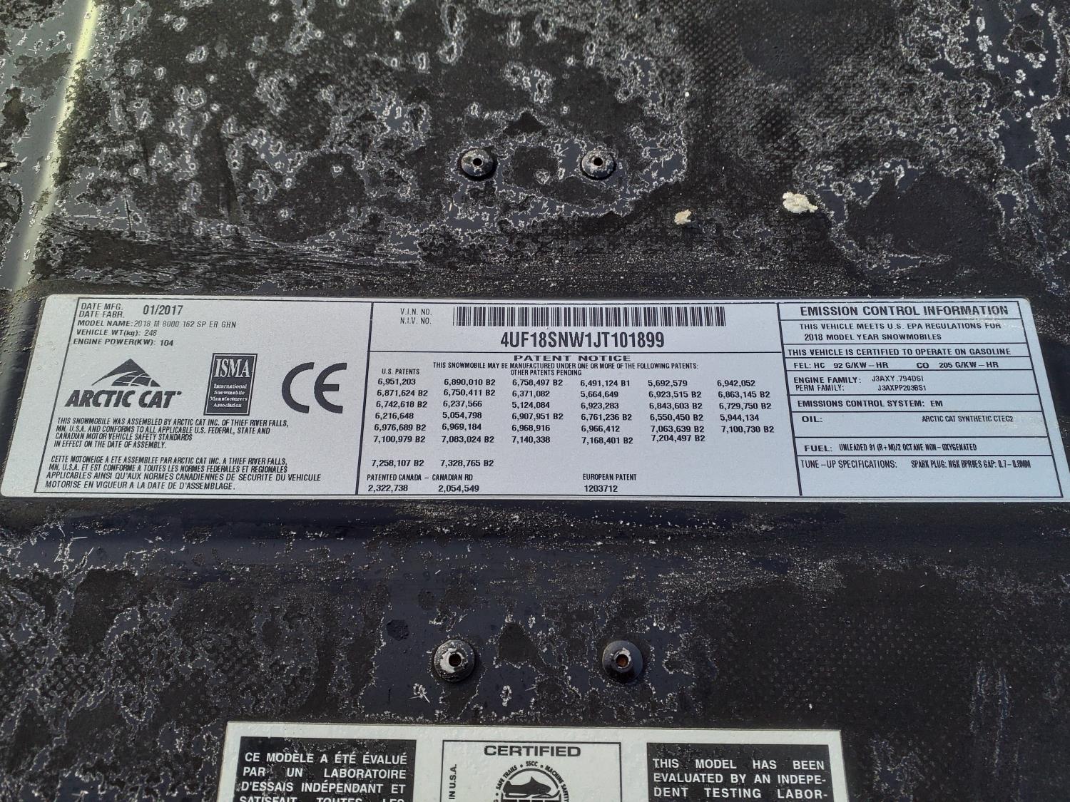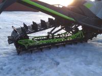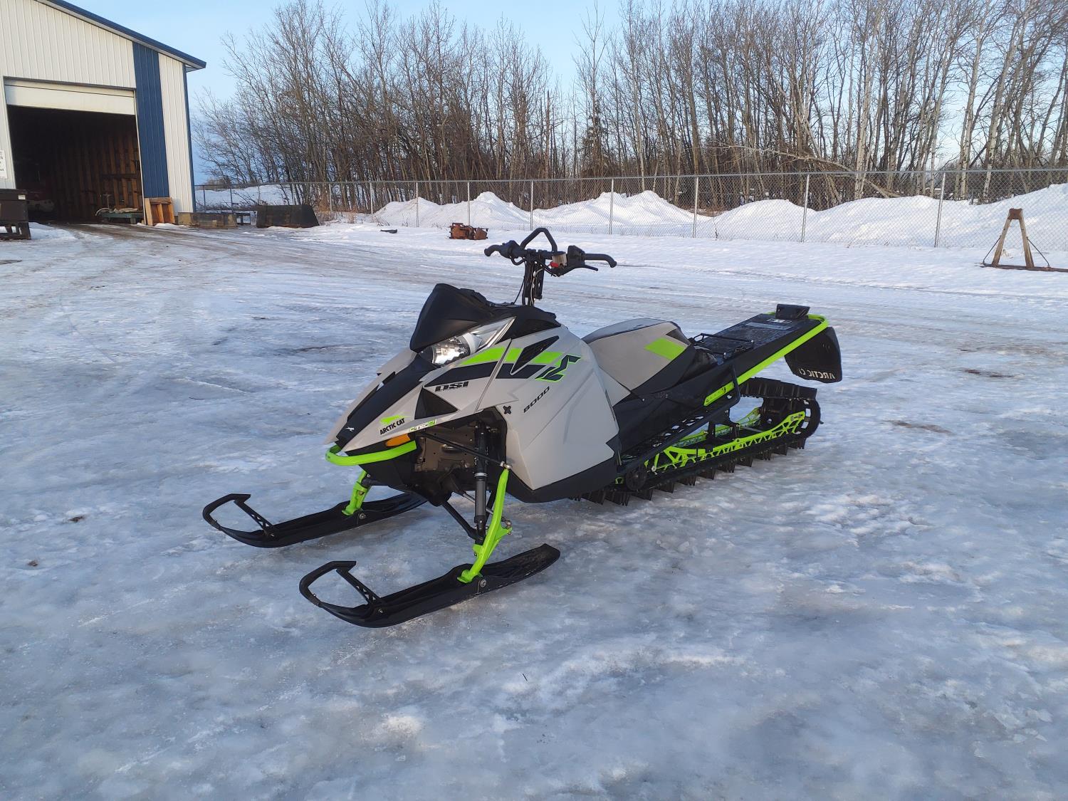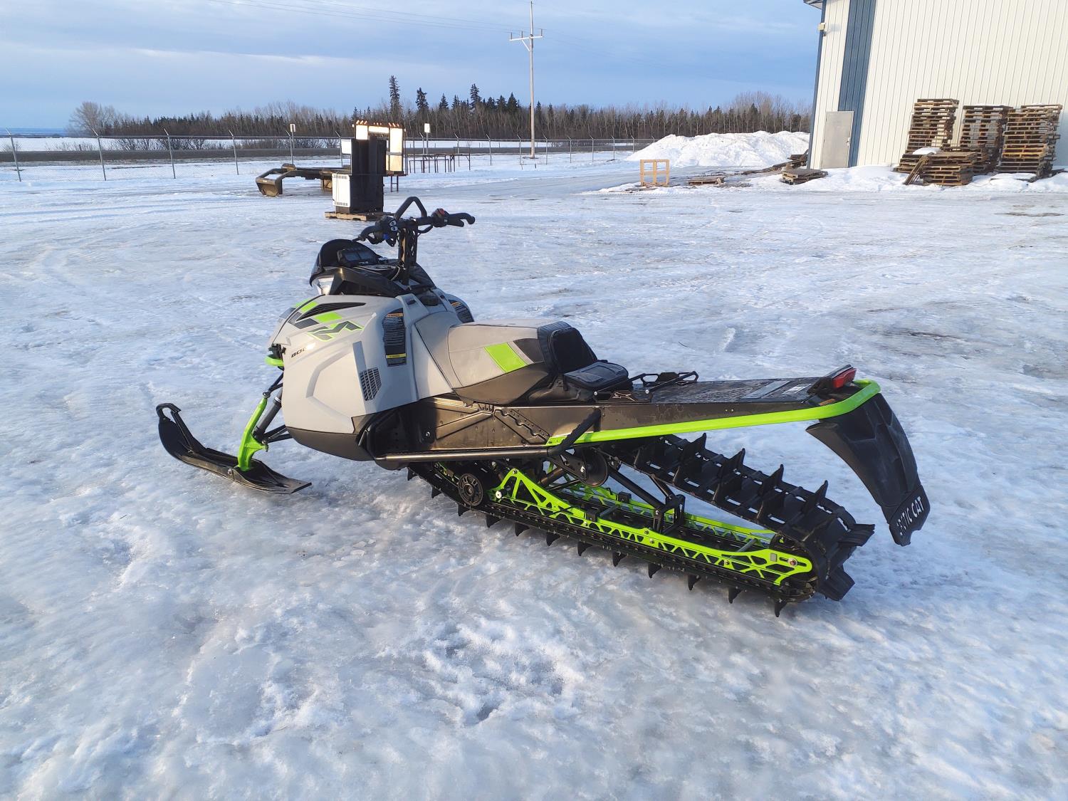 800 cc Arctic cat 2 cylinder fuel injected 2 stroke liquid cooled engine, reverse, windshield, hand and thumb warmers, high rise handlebars, 162 inch long track, 15 inch wide track, 3 inch paddles