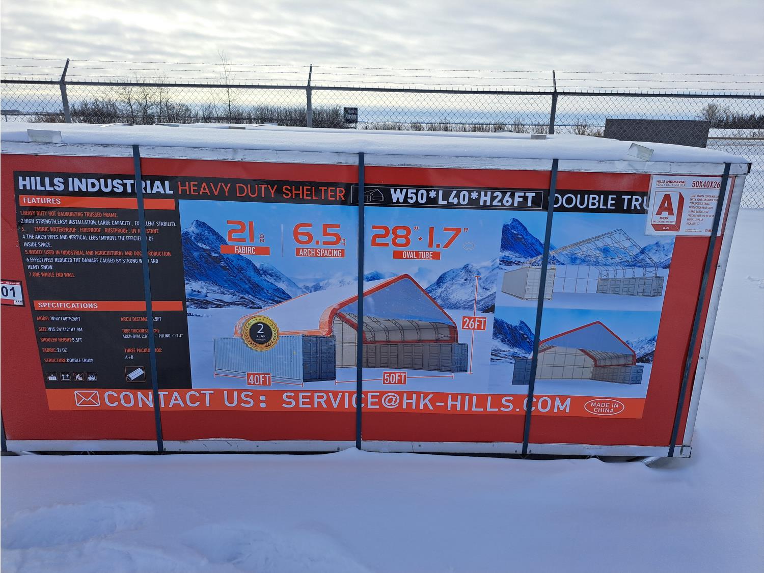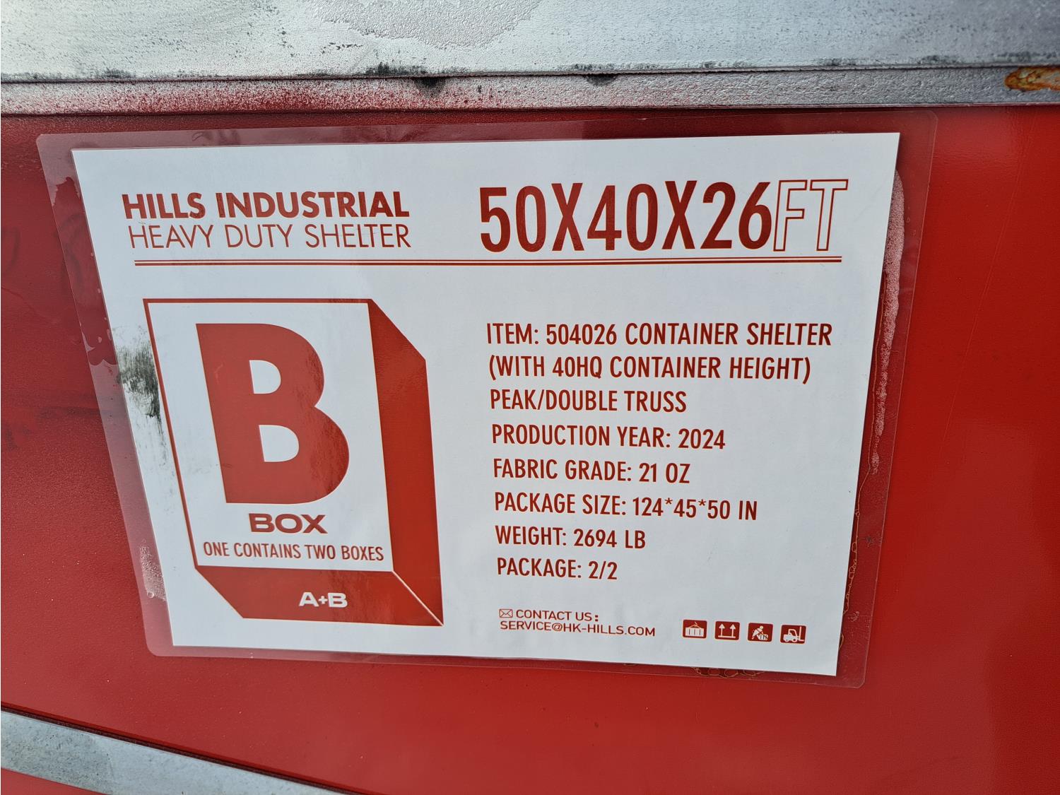 101 Hills Industrial 50 Ft W X 40 Ft L X 26 Ft H Heavy Duty Container Shelter (Unused)