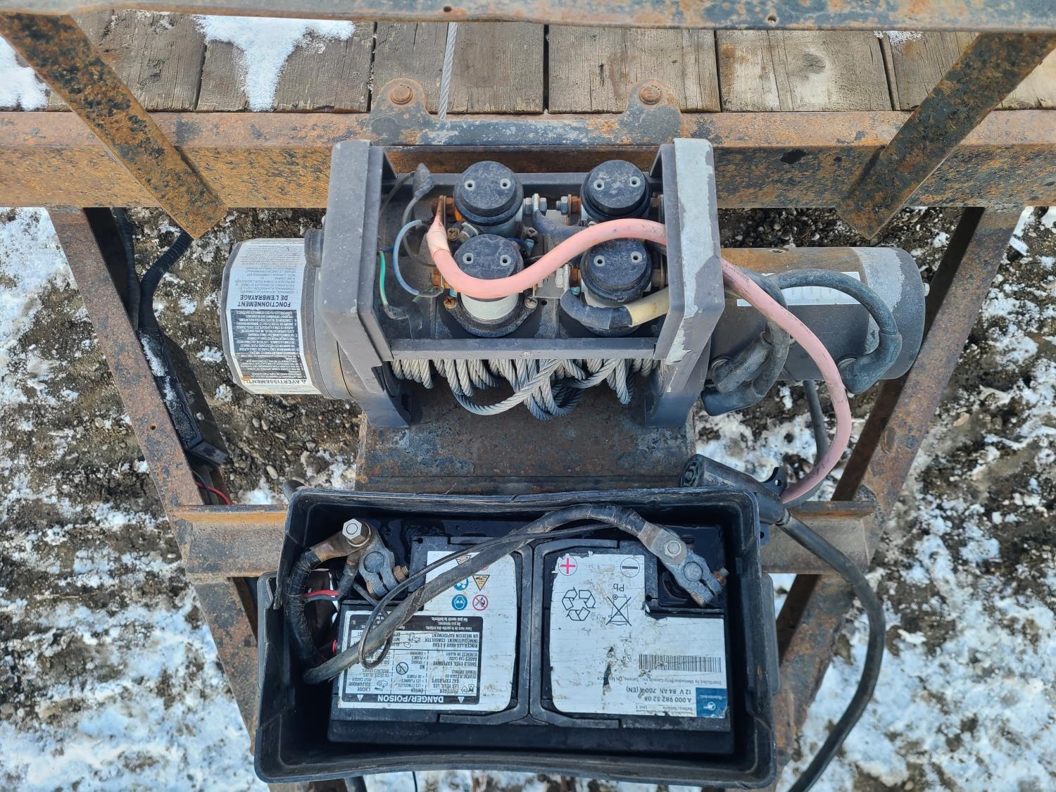 80 inch wide deck, 24 inch beaver tails, wood deck, spring suspension, ball hitch, stake pockets, electric winch, 3500 lb axles, 205/75/R15 tires