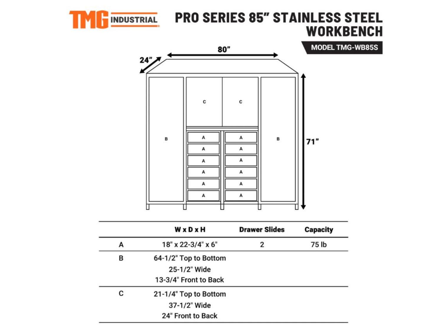 1510 TMG Industrial TMG-SC80 80 Inch Tool Chest with 12 Drawers (Unused)