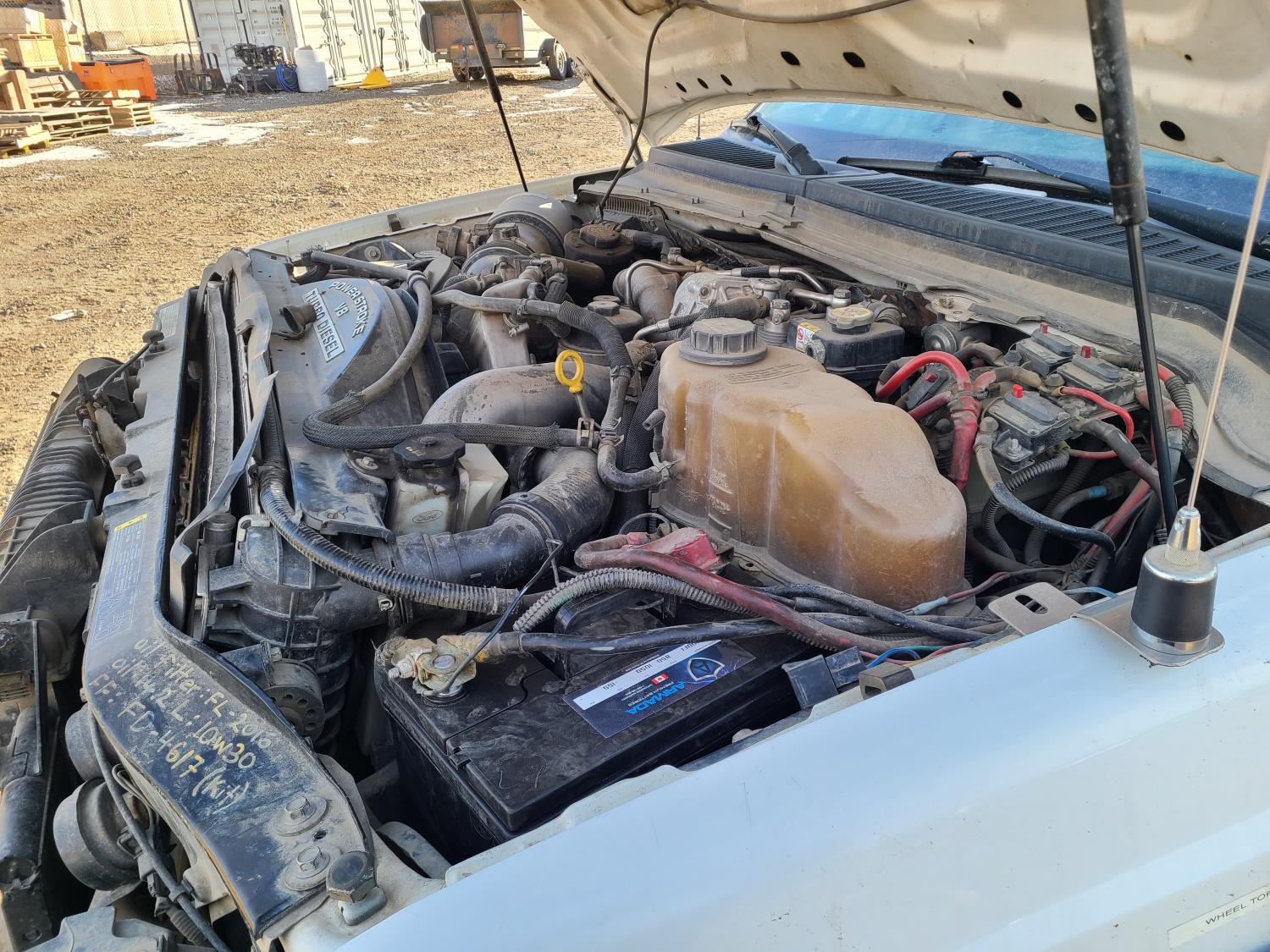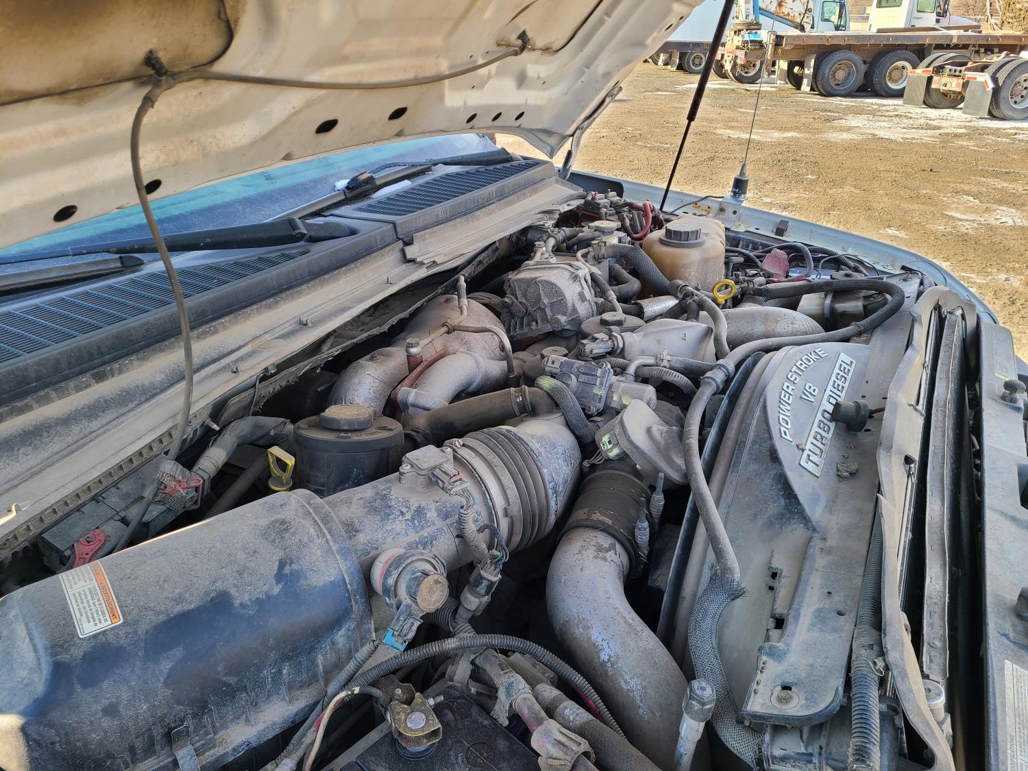 Ford POWER STROKE 6.4 L OHV 32V TURBO diesel engine, Starts and runs, Moves forward and backward, stops, bucket is functional
