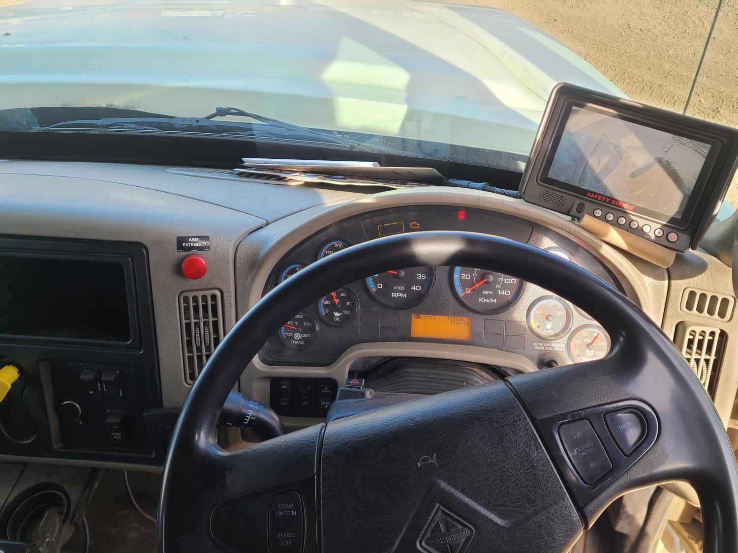 International NAVISTAR 330 HP diesel engine, DEF required, engine heater, engine brake, positive air shutoff, ALLISON 300 RDS 5 speed auto shift transmission, A/C, air ride driver seat, stereo, beacons, spring suspension, 16,000 lb front axle, 40,000 lb rear axles, diff lock, 11R22.5 tires