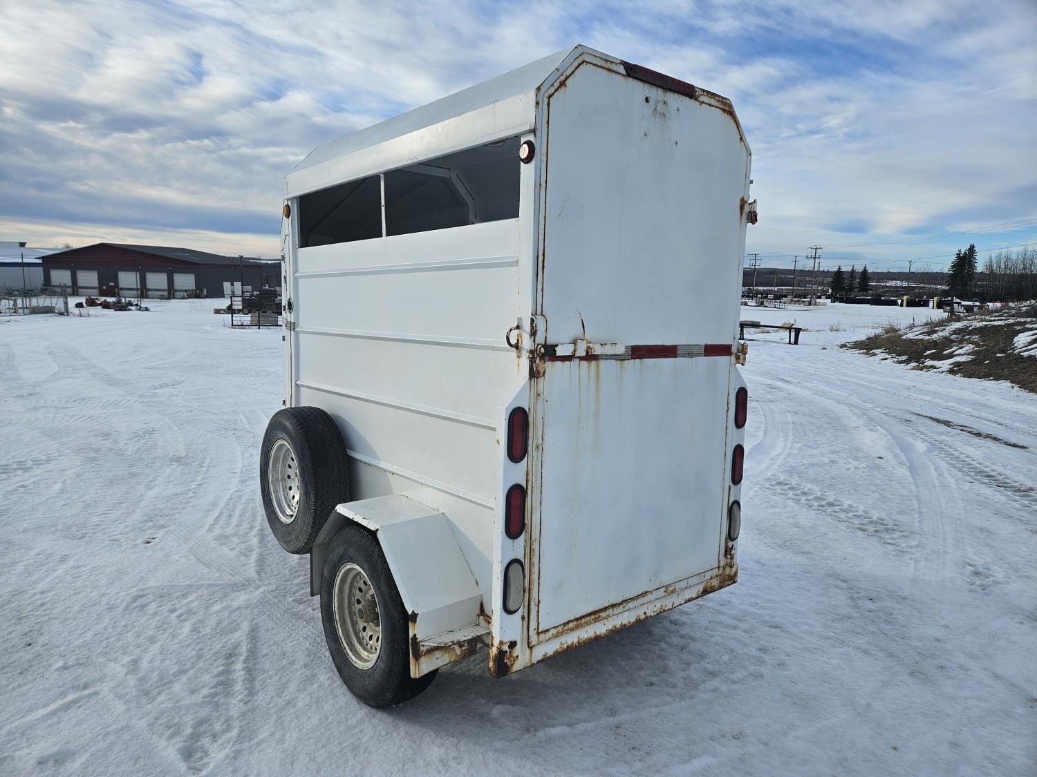 single horse, bumper pull, 5 bolt torsion axle, rear swinging door, front tack storage w/ saddle stand, nose storage, interior lighting, interior measurements 76 inch L x 46 inch W, 78 inch T, rubber mat