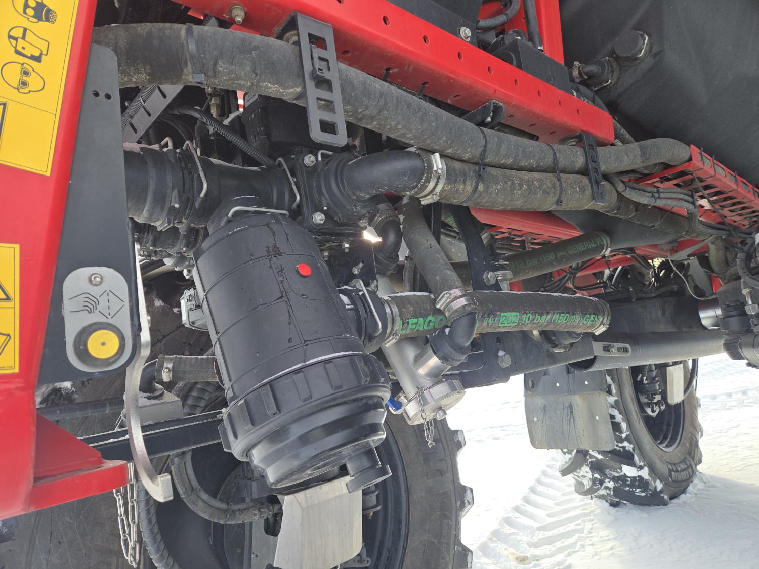 2100 Imp gallon poly tank, hydraulic drive, fence row nozzles, rinse tank, auto boom height, wind screens, recirculating boom, A/C, radio, upgraded stereo, air ride seat, buddy seat, AutoGuidance Steering, on board blow-out compressor, premium light package, DEF required, hydro transmission, hydraulic axle adjustment, LED spray lights, individual nozzle control, second set of tires, 750/75R46 tires