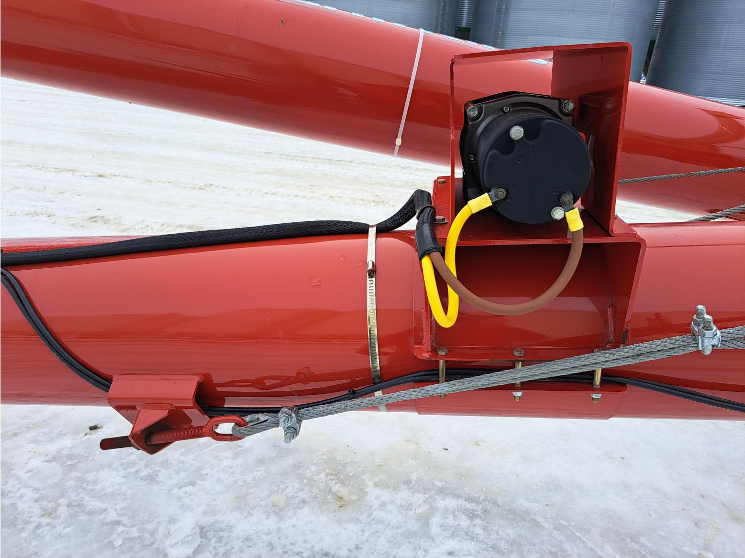 540 PTO, electric control for swing mover, LED light package, double flight hopper, reverser, hydraulic lift, full bin sensor, 9.5L-15 tires