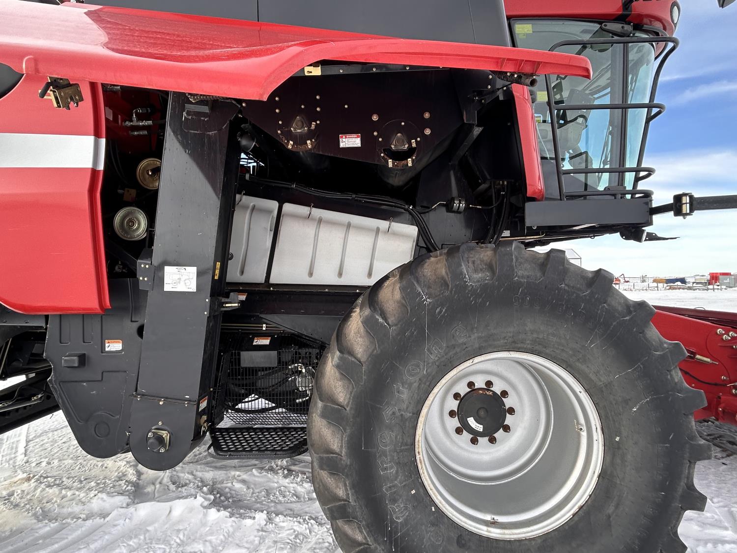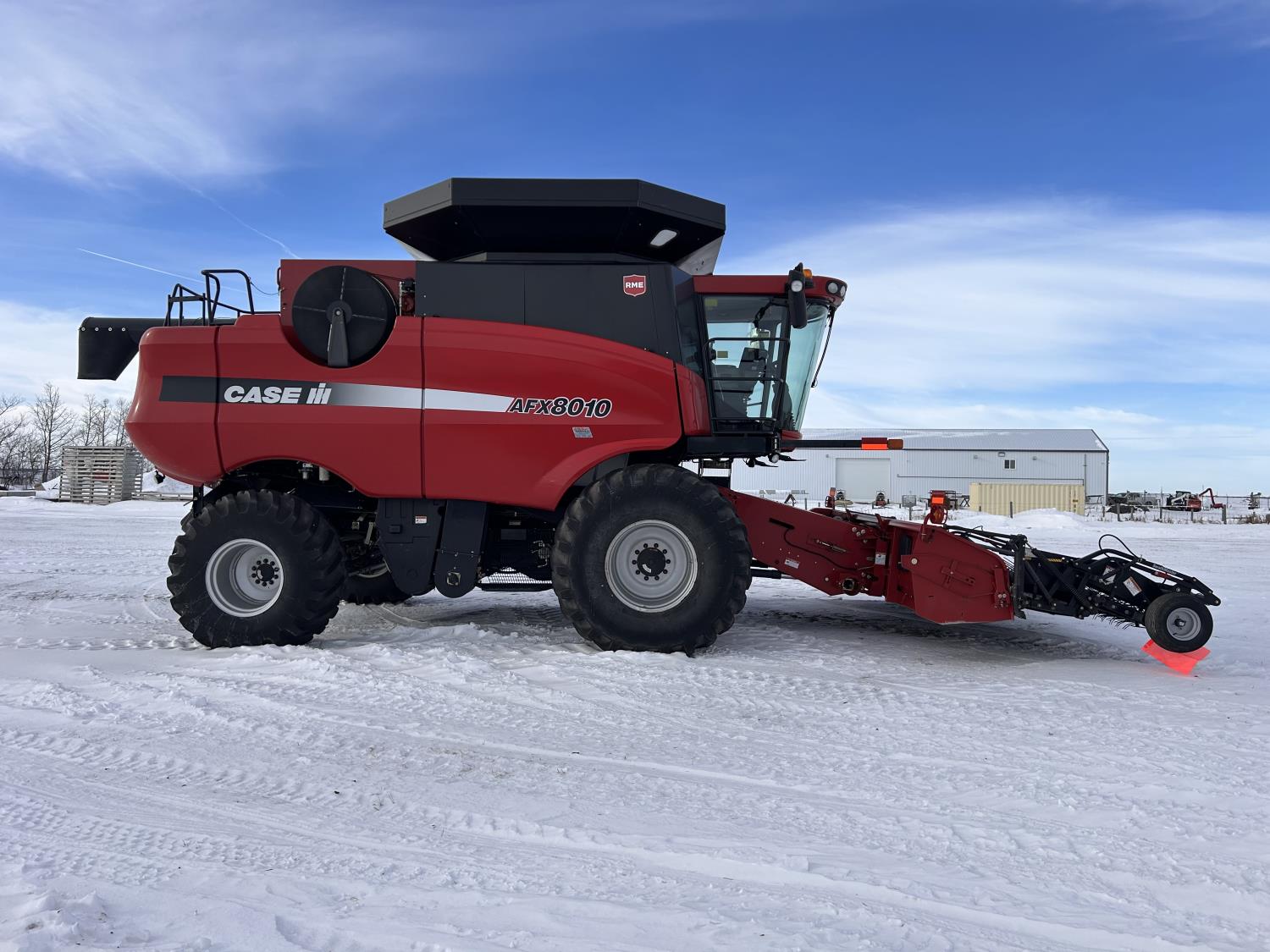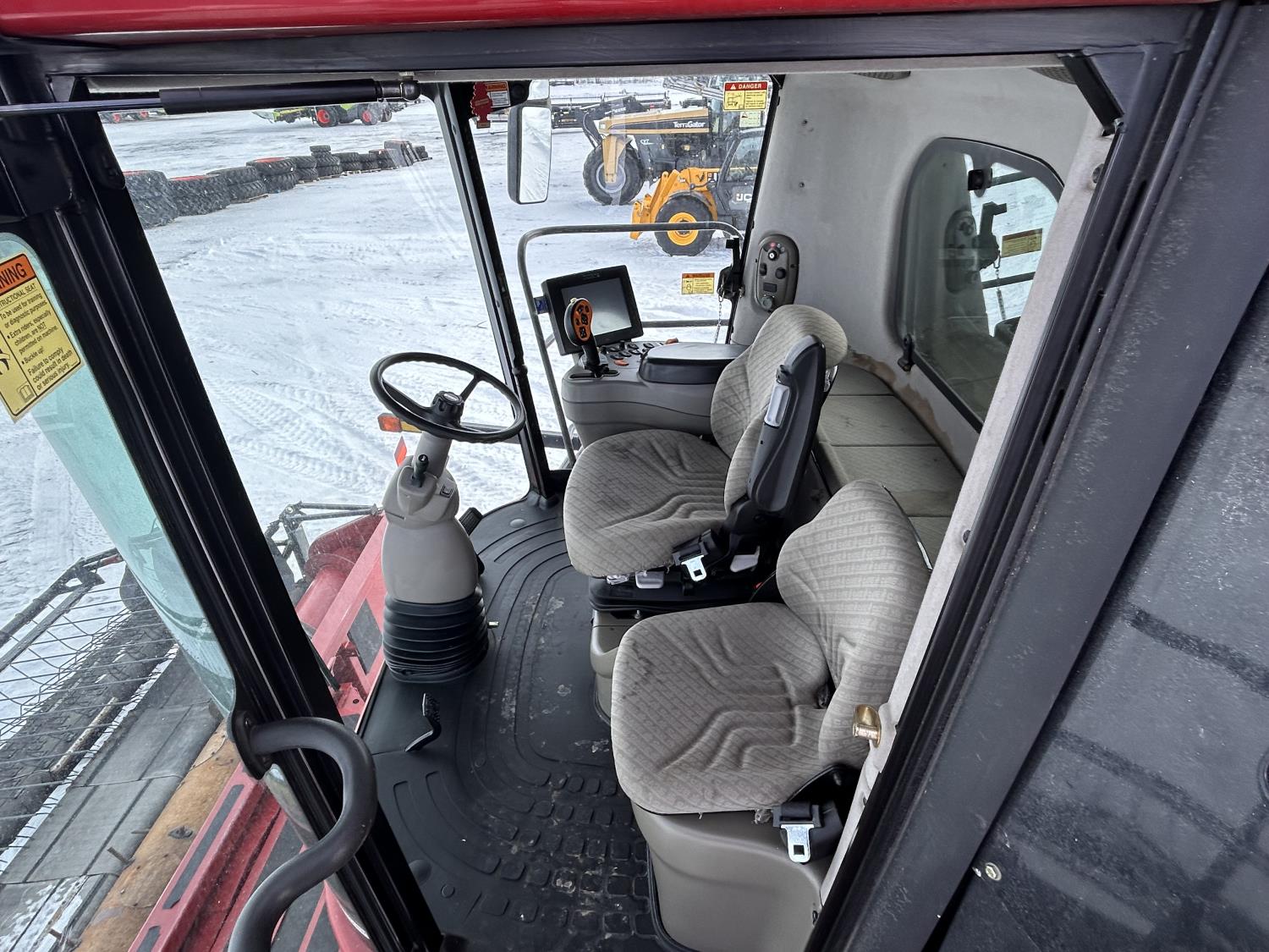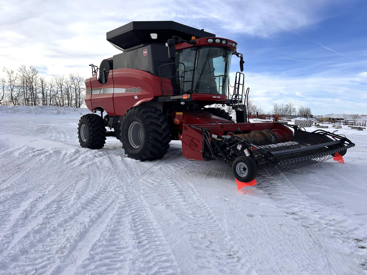 Case IH 15 ft pick-up header, variable speed reel, auto header height, fore & aft, reverser, lateral tilt, rock trap, yield & moisture, chaff spreader, fine cut chopper, grain tank extensions, A/C, radio, buddy seat, AFS Pro 600 Monitor, 800/60R32 front tires, 28L-26 rear tires