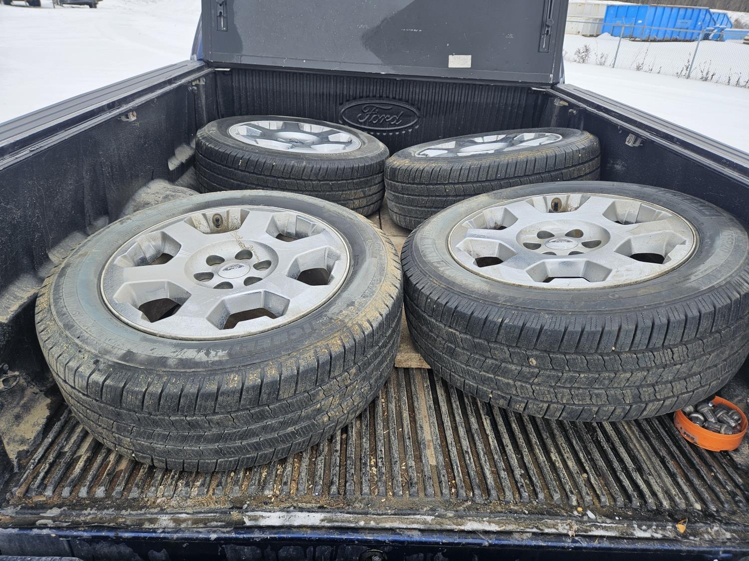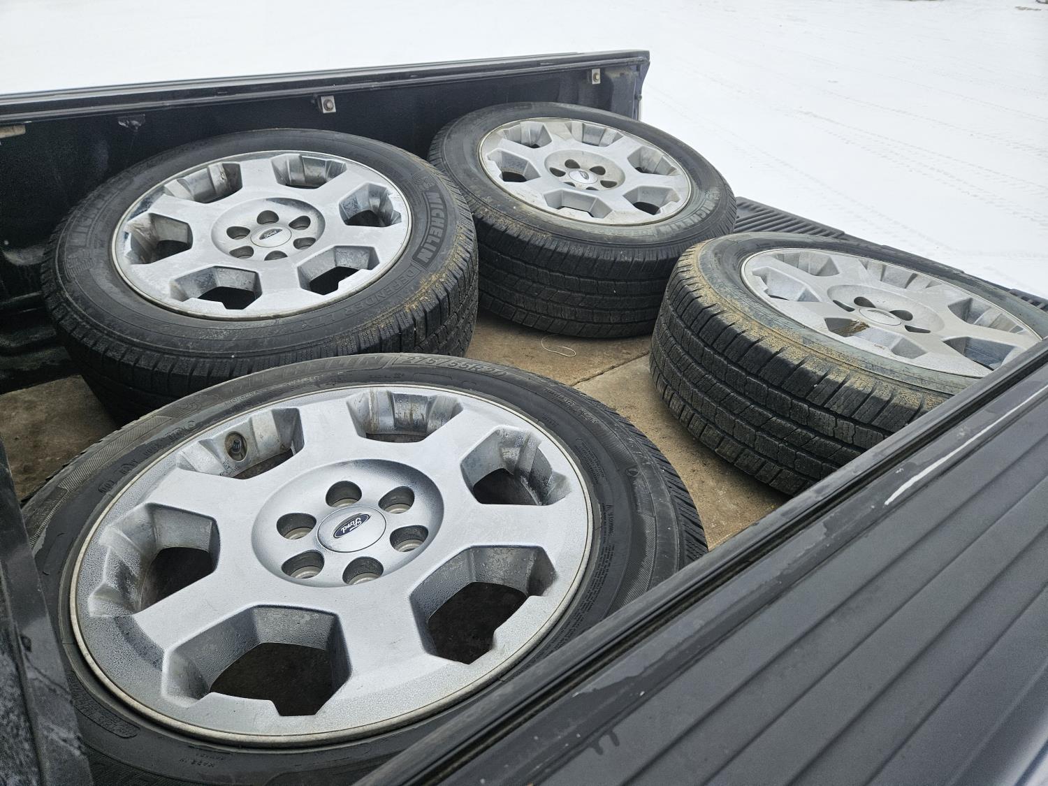 5.4 L, V8, gas, automatic transmission, P/W, P/L, A/C, 6 ft box, hard folding tonneau cover, sunroof, center console, power seats, trailer package, 275/55R20 summer tires on factory Ford 6 bolt rims, RTX Offroad rims with 275/70R18, new brakes and rear rotors