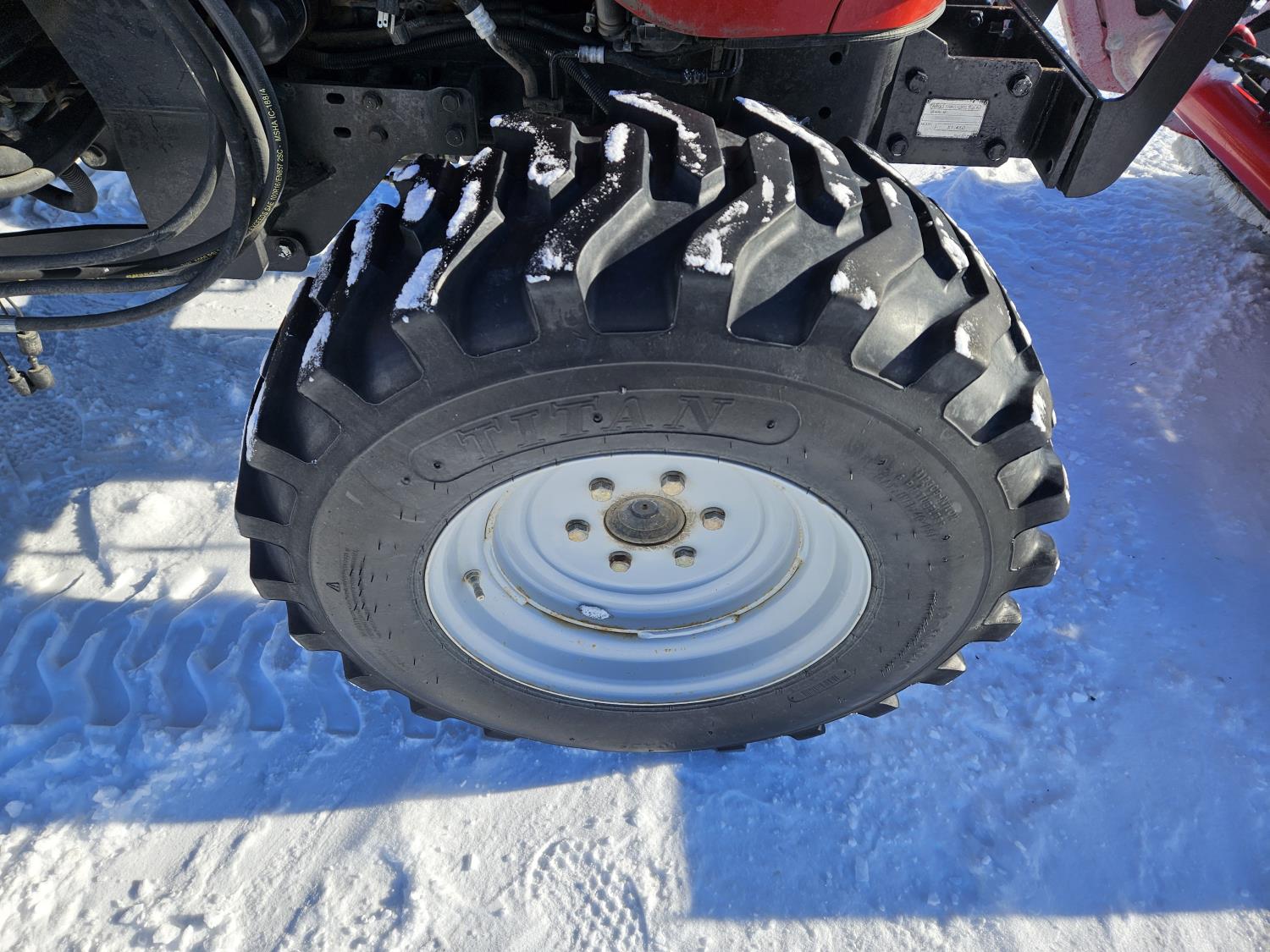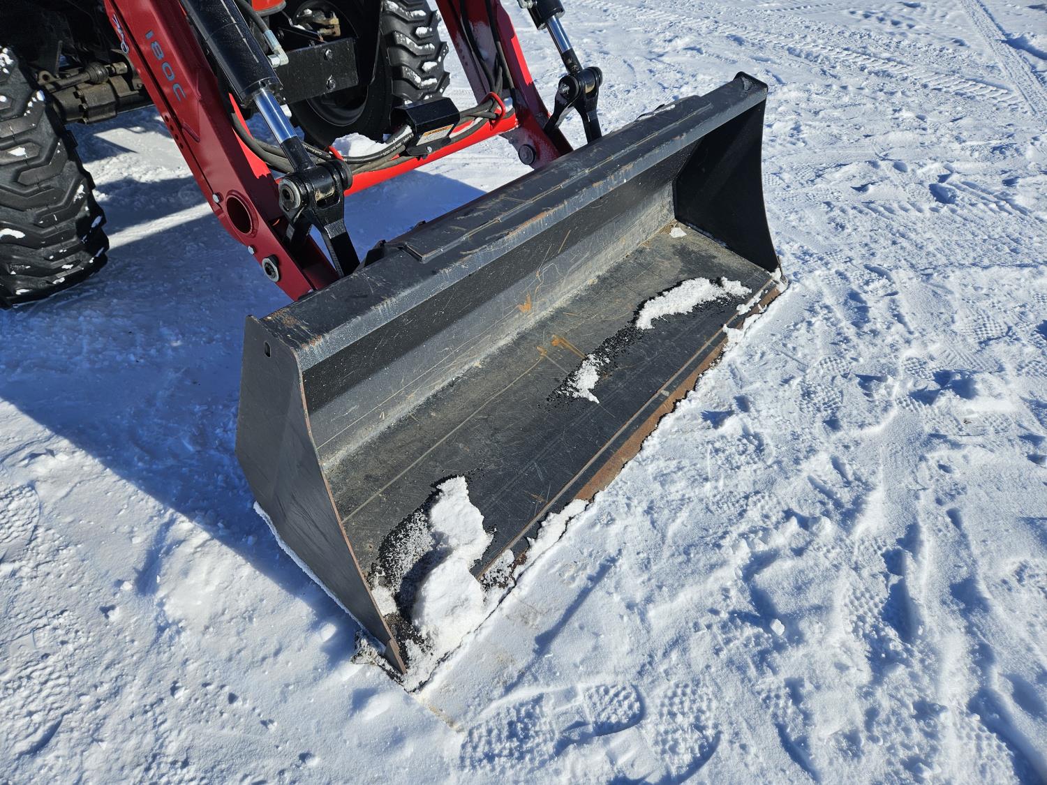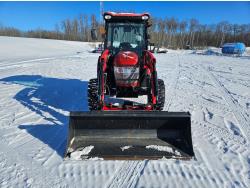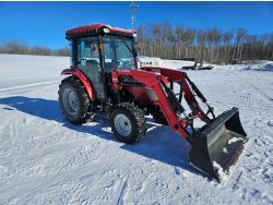 McCormick 180 C loader, Q/A, 72 inch bucket, Kukje 2.3 L 4 cylinder 47 HP, diesel engine, 12 speed fully synchronized transmission, cab, left hand reverser, joystick, A/C, radio, 540 PTO, 3 point hitch, 2 rear hydraulic outlets, 12-16.5 front tires, 16.9-24 rear tires