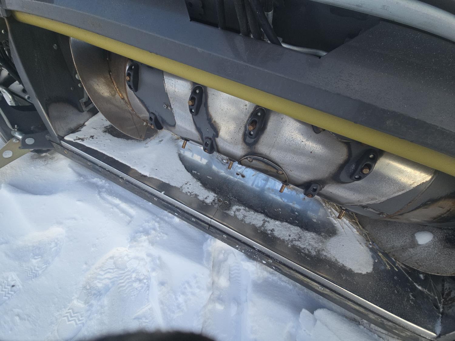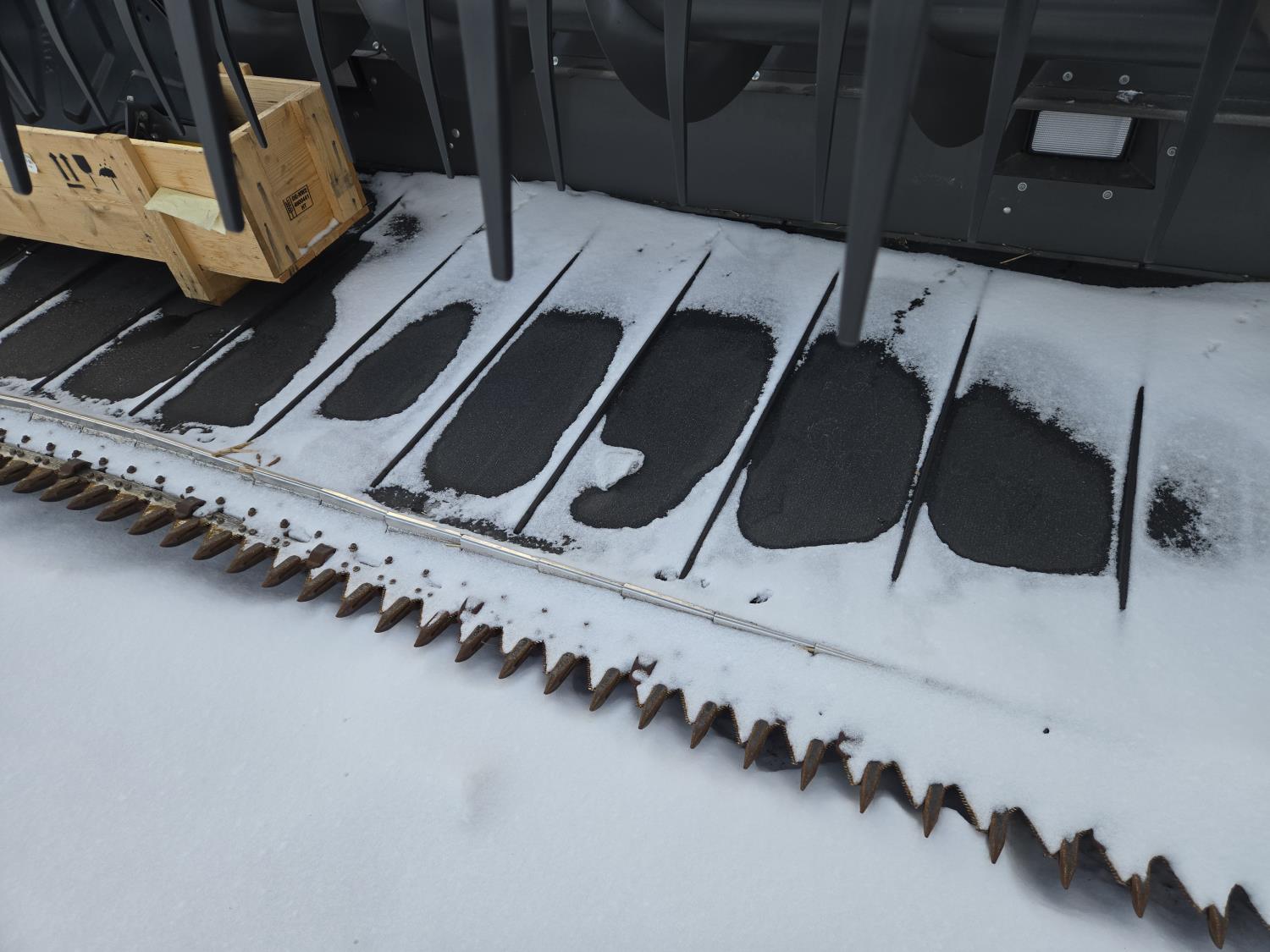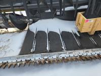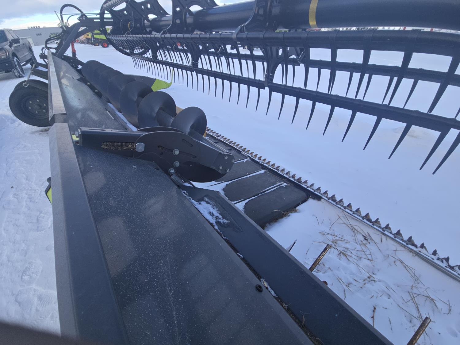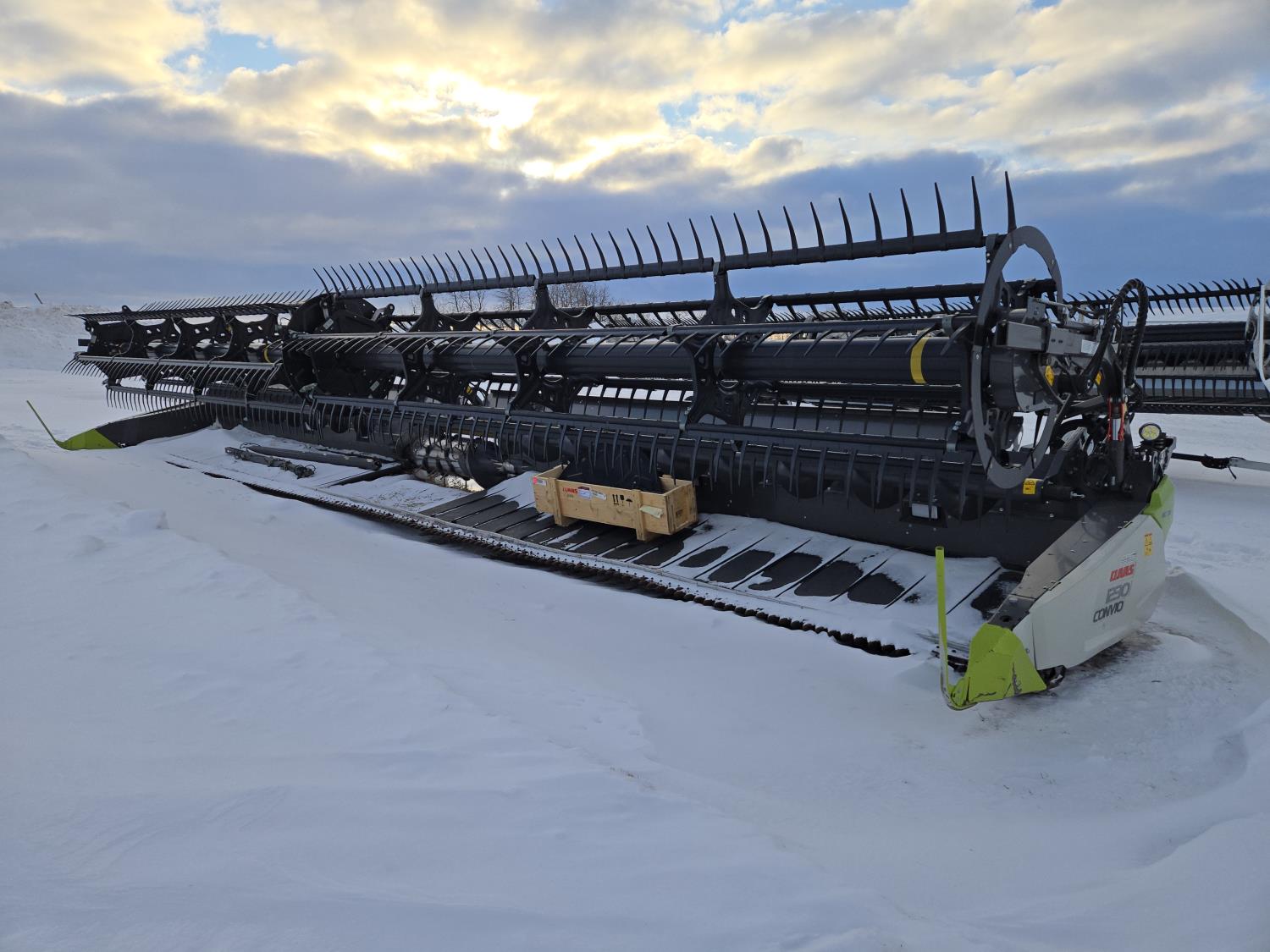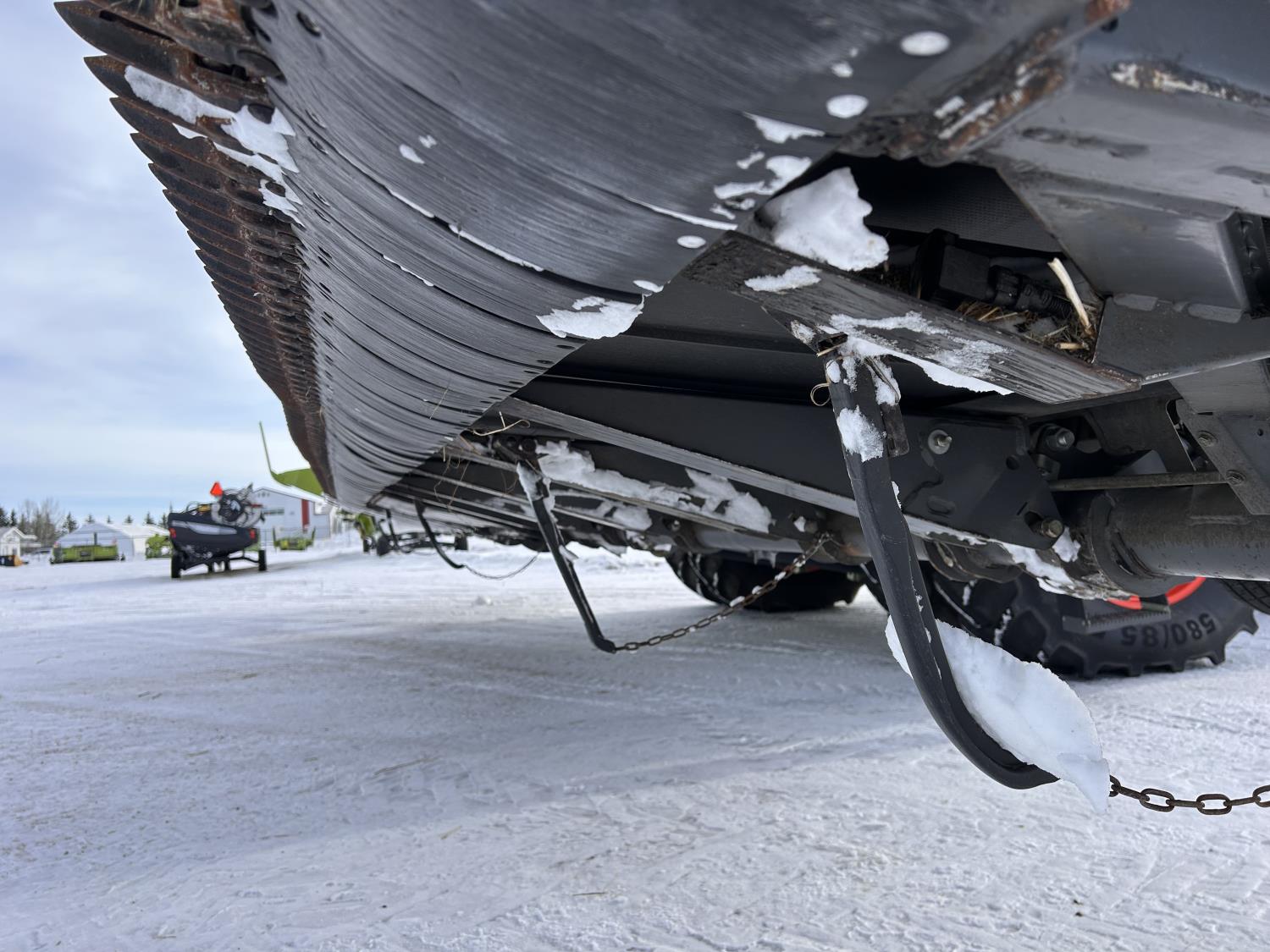 pickup reel, fore & aft, top cross auger, integrated transport, split reel, gauge wheels, canola knife, Auto guidance with 6 sensors, LED light package, reel speed and auto belt speed, stone deflector plate, 280/75R15.3 tires