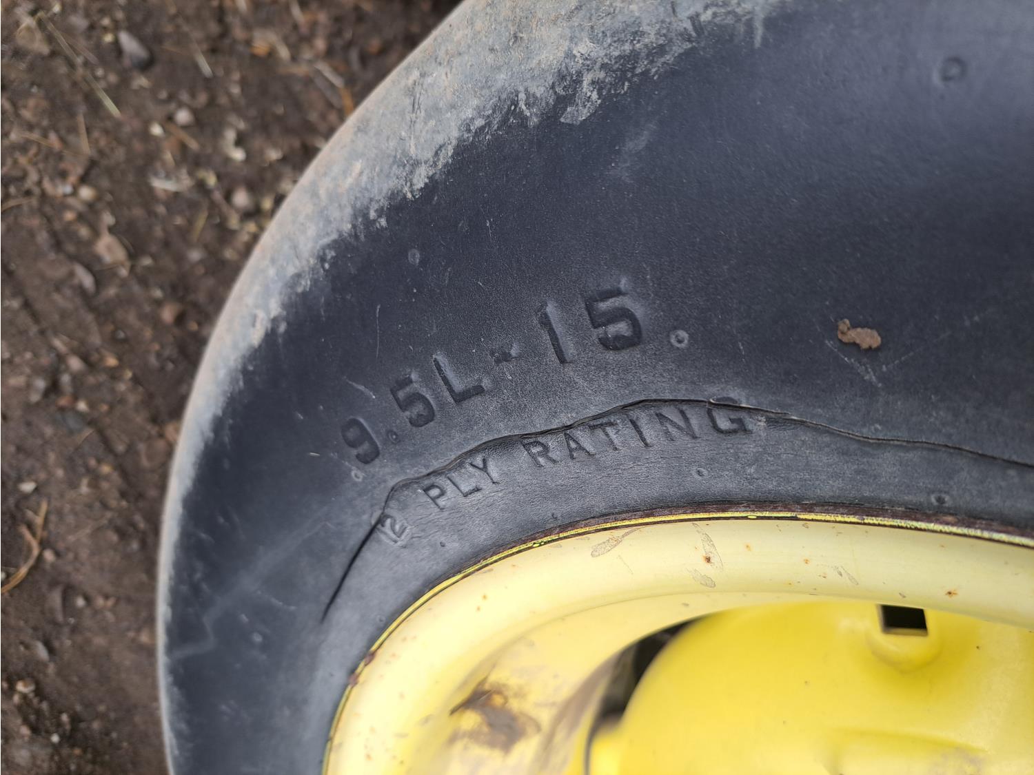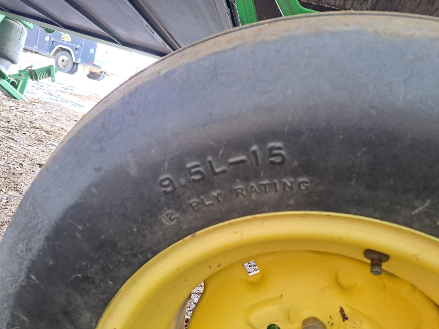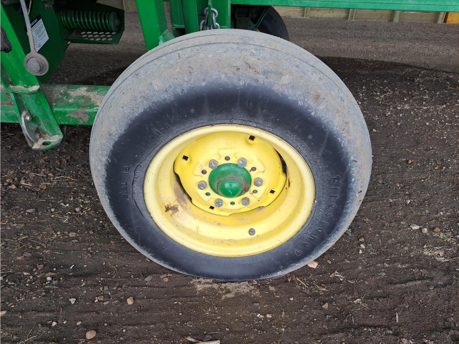 pickup reel, fore & aft, Factory transport, gauge wheels, fits, 9600, 9610 and 9650 JD combines, 9.5L-15 transport tires