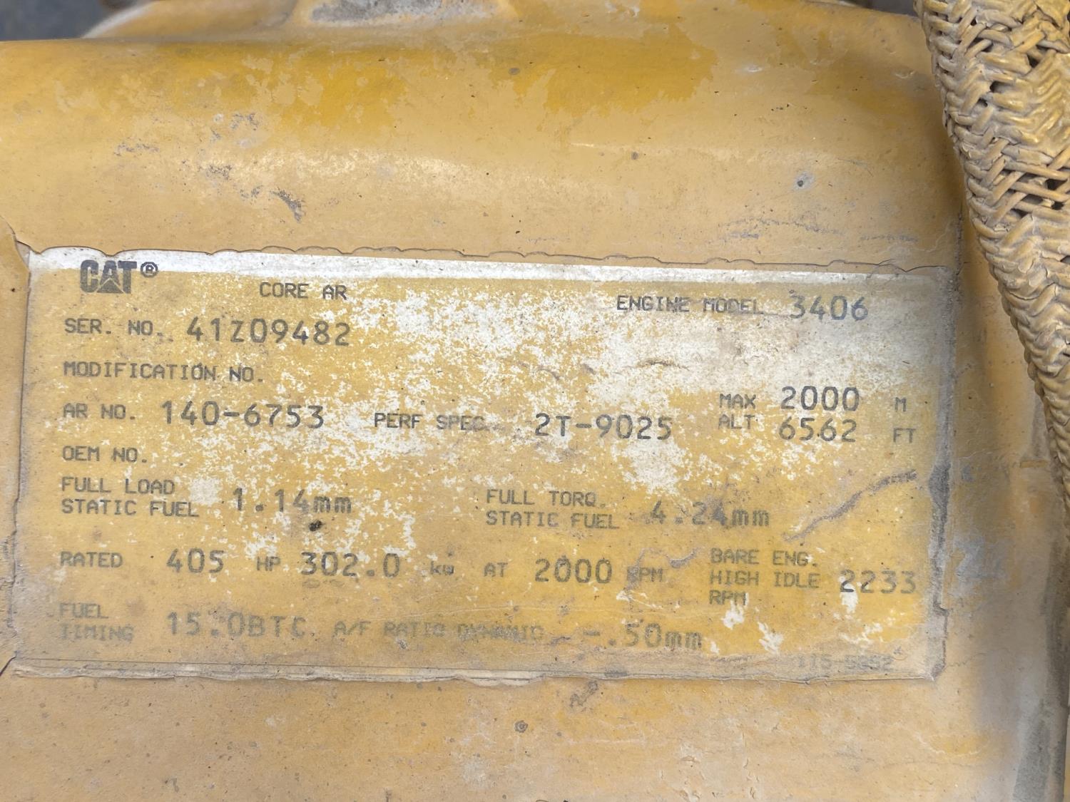 Caterpillar 3406 engine,405 HP, Caterpillar powershift 4 speed transmission, 29.5R25 tires, complete, missing cab door, driveline disconnected at articulation, mechanical issue with articulation