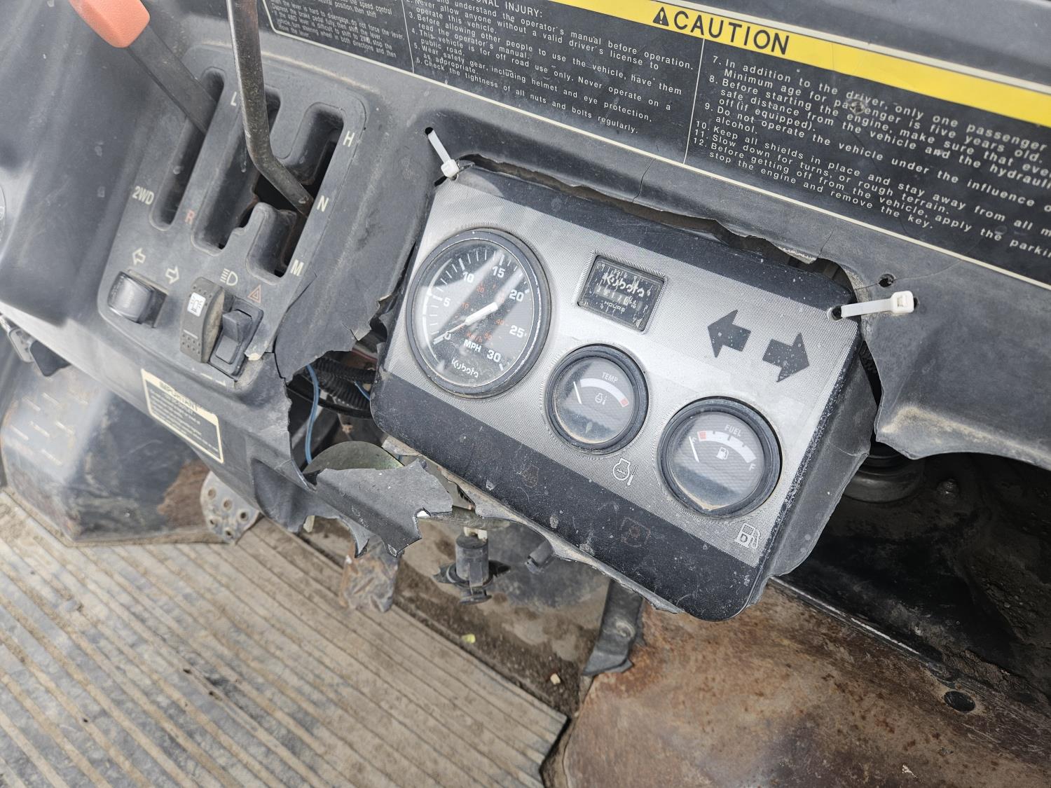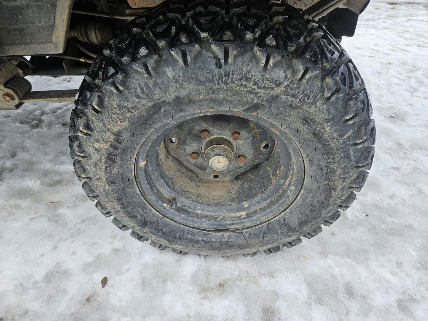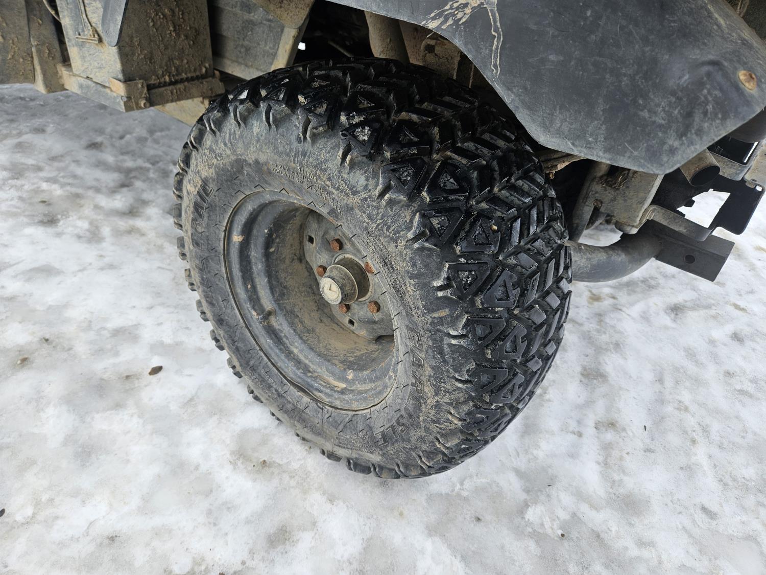 900 cc diesel engine, automatic transmission, front winch, hydraulic dump box, receiver hitch, 3 range transmission with reverse, 25X10.50X12 tires