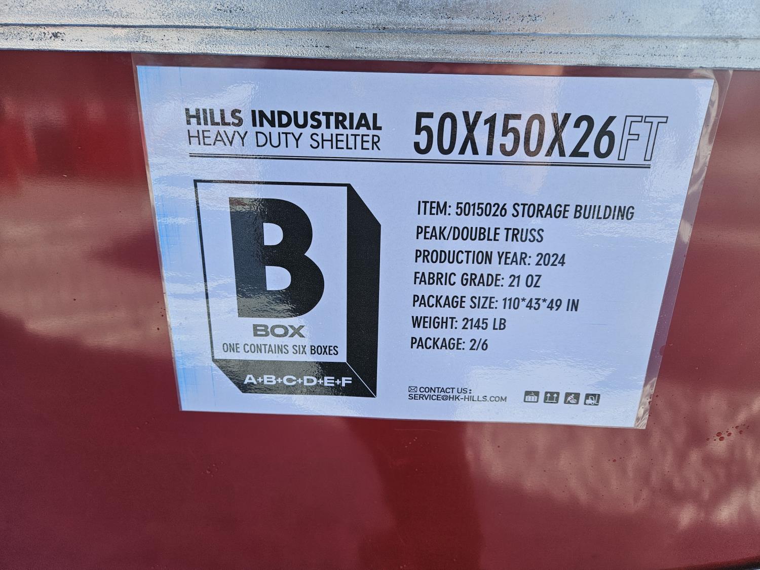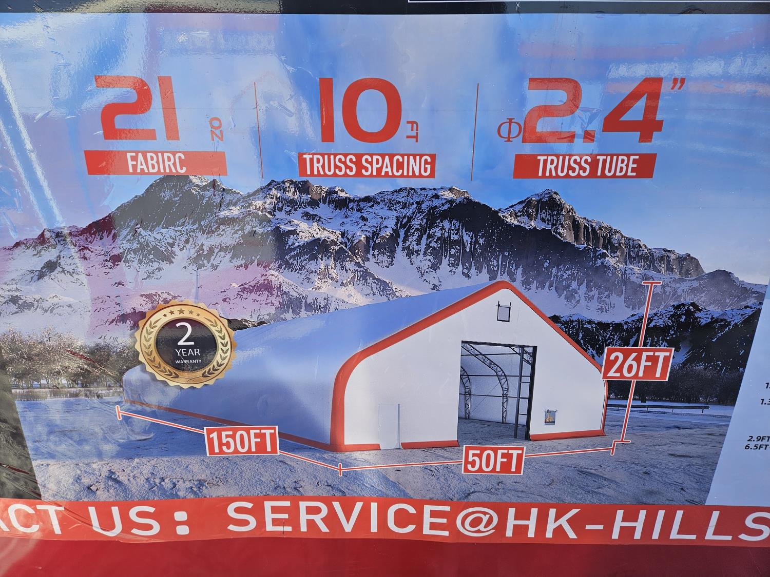 double truss, 21 oz PVC fabric, 10 ft truss spacing, 2.4 inch tubing, peak ceiling, appx weight of package 6765 kg