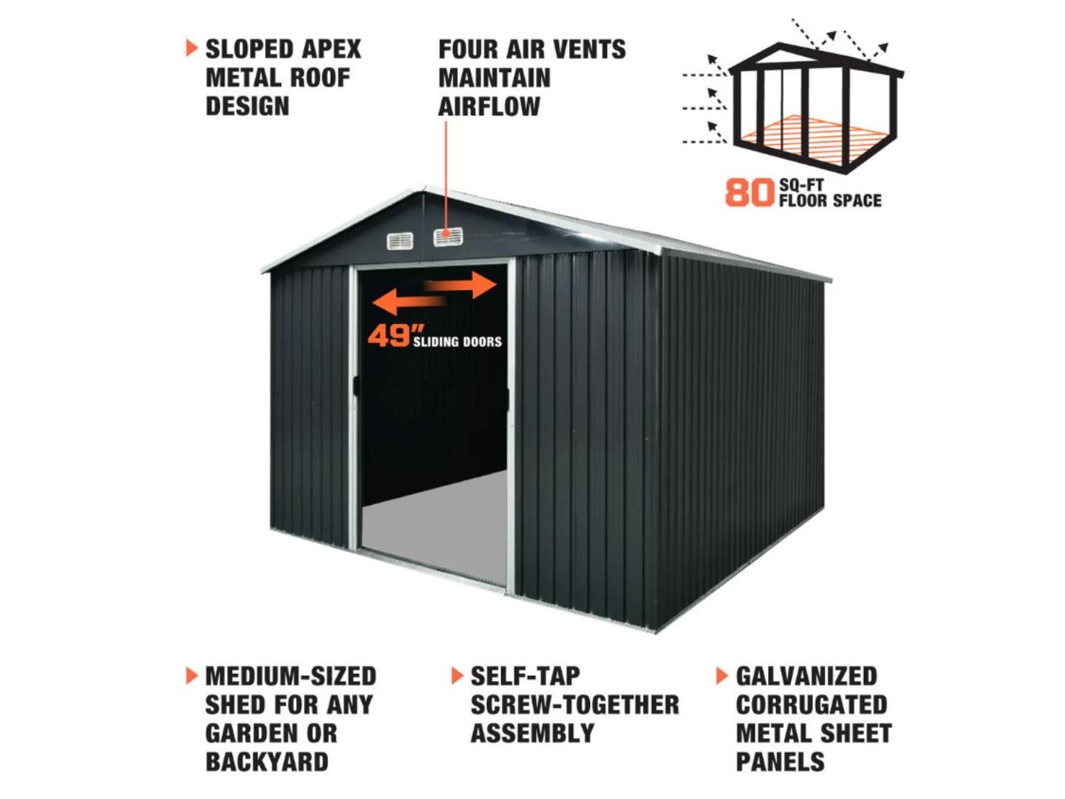 14 TMG Industrial TMG-MS0810 8 Ft X 10 Ft Galvanized Apex Roof Metal Shed (Unused)