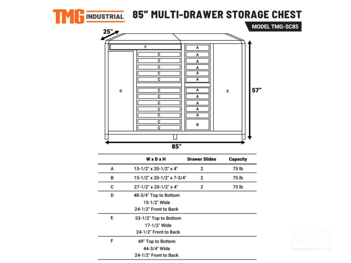 54 TMG Industrial SC85 85 Inch Multi Drawer Tool Storage Chest (Unused)
