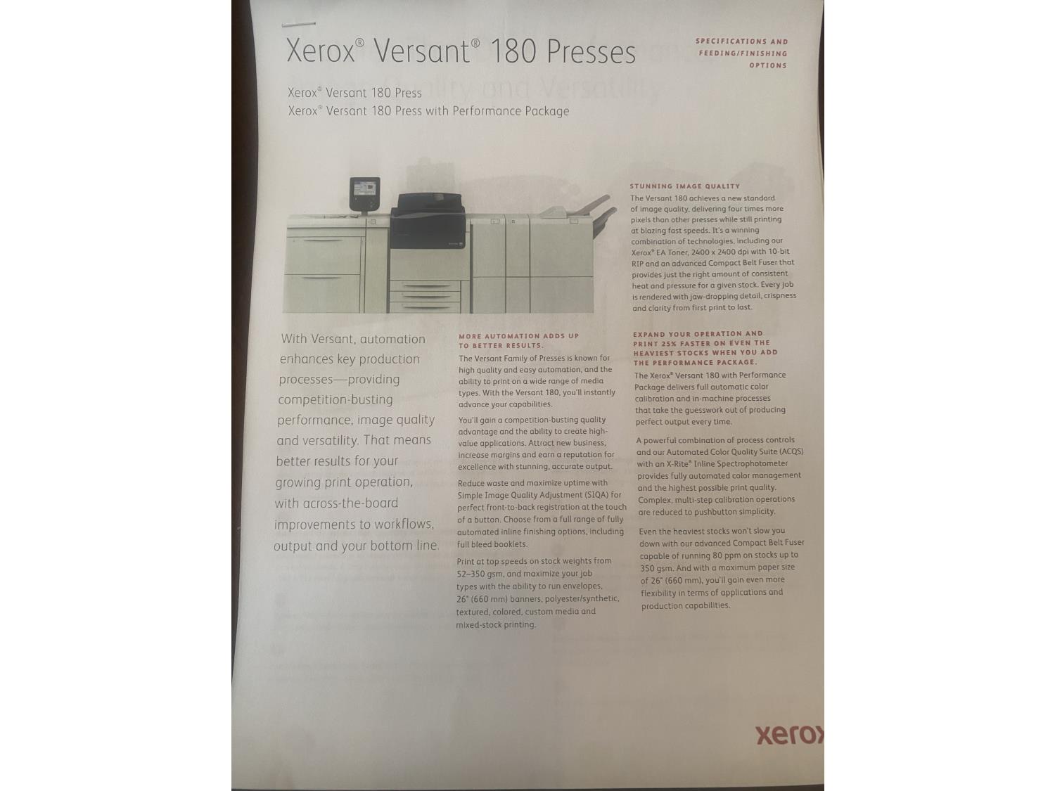 85 Xerox Versant 180 Press Commercial Printer Package