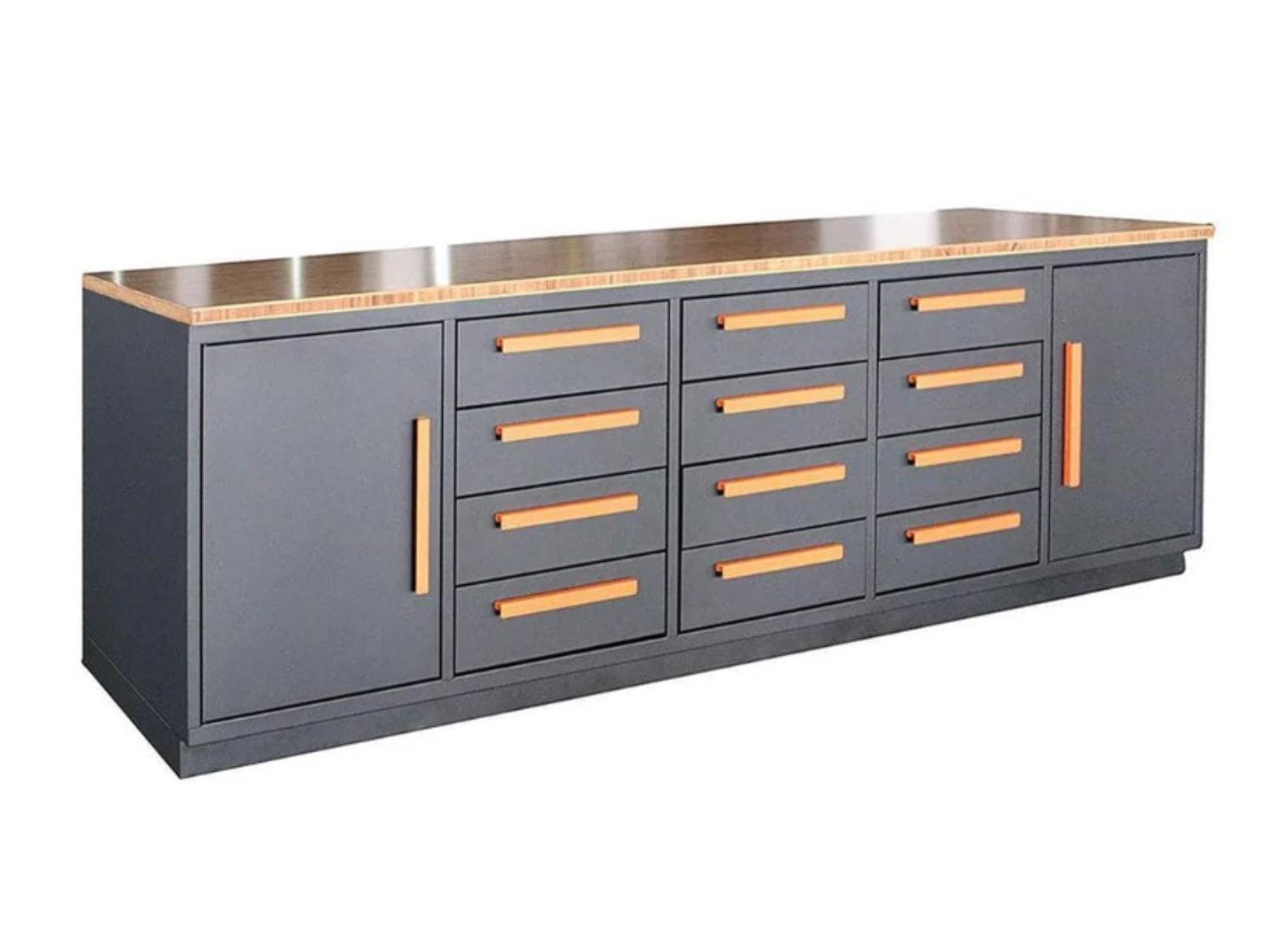 57 TMG Industrial TMG-WB10B Heavy Duty 10-Ft 12 Drawer Bamboo Table Top Workbench (Unused)