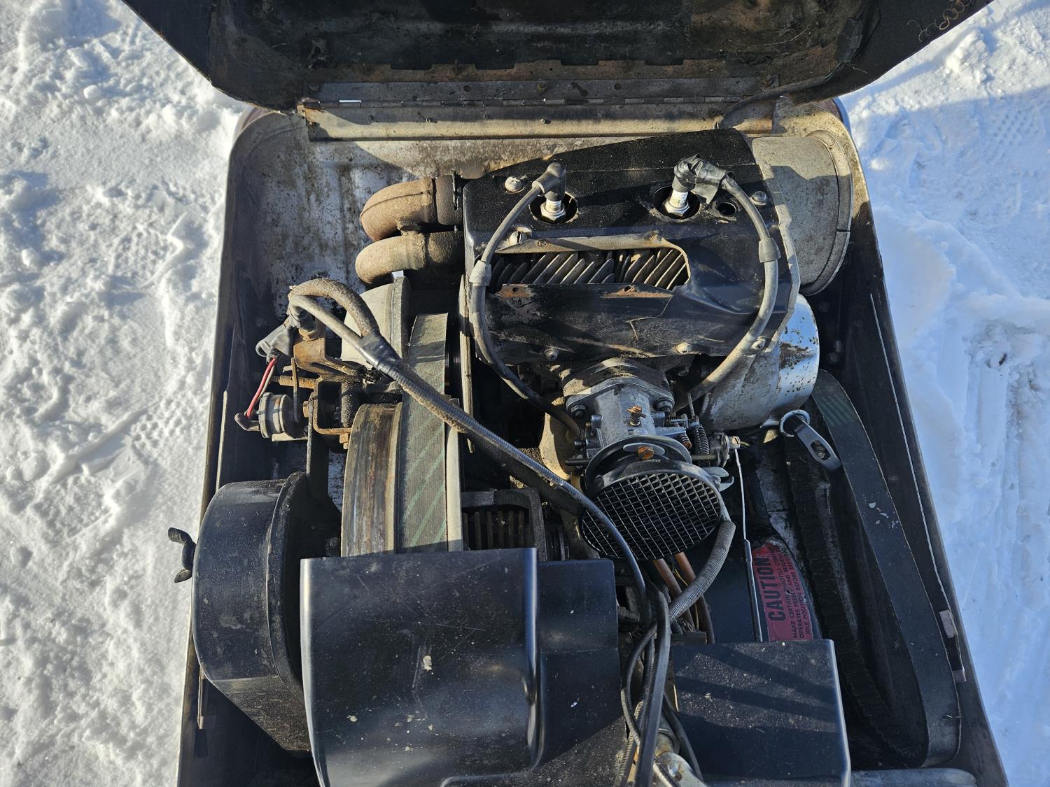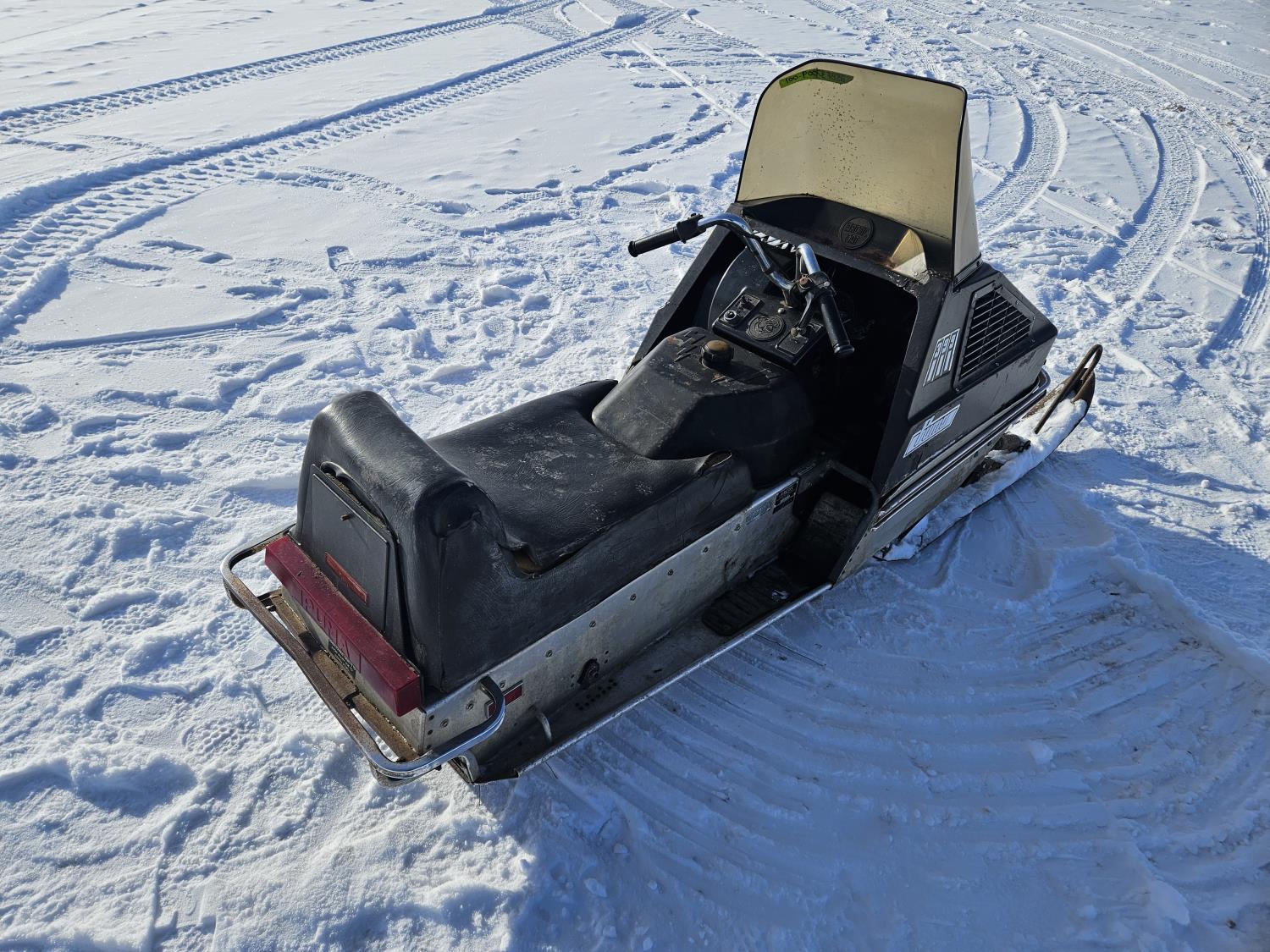 399 cc 2 cylinder 2 stroke Fan cooled engine, windshield, steel cleated track, new drive chain, rebuilt carb