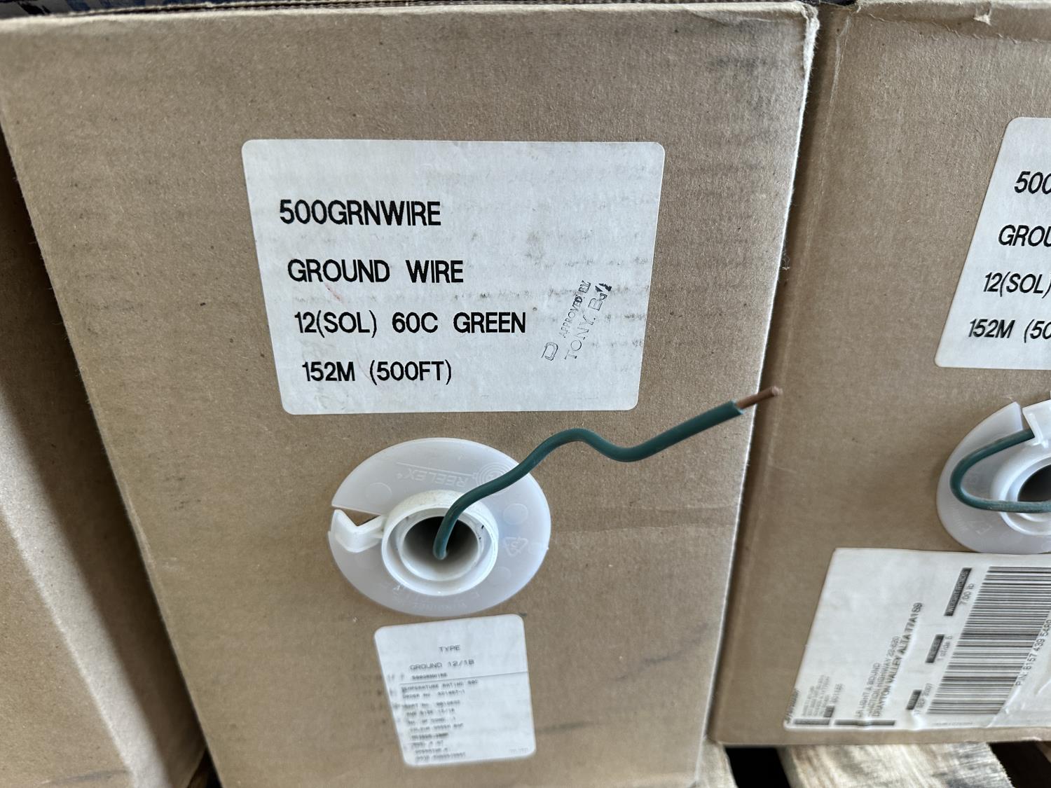 1064 (10) Boxes of 12 Gage Green Ground Wire (2) Boxes of Grounding Rods