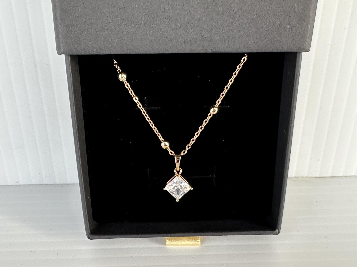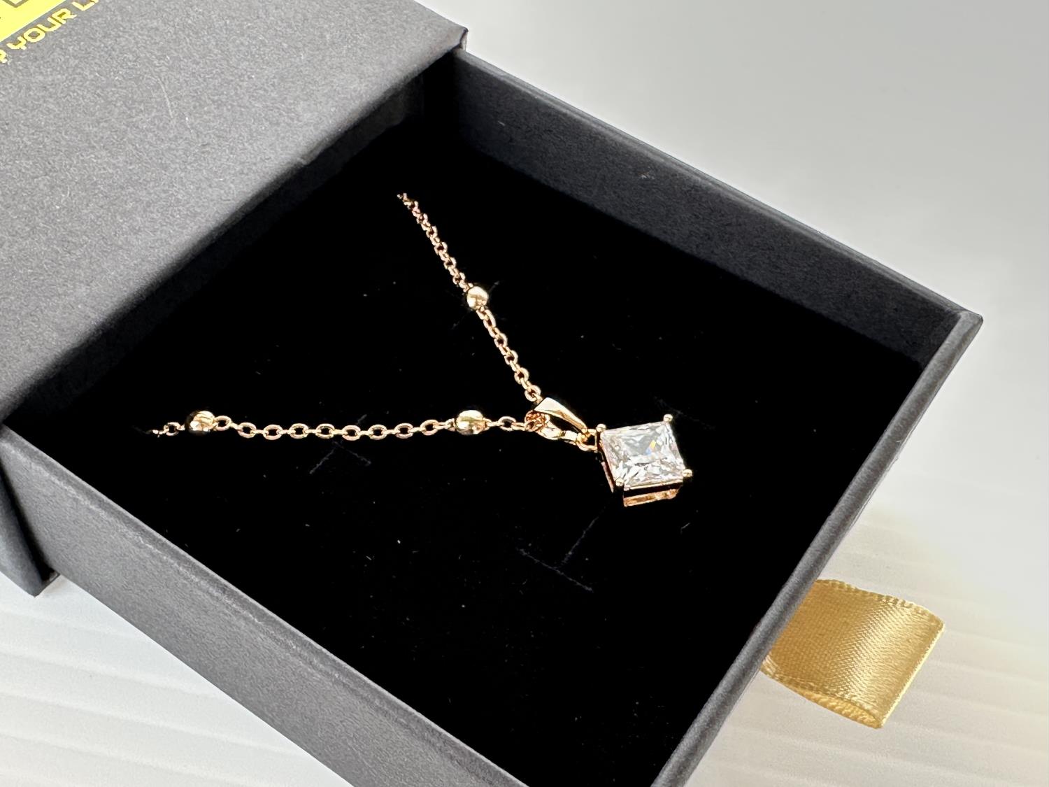 1362 Smartlife 18K Gold Plated 2.0 Ct Simulated Diamond Princess Cut Necklace (Unused)