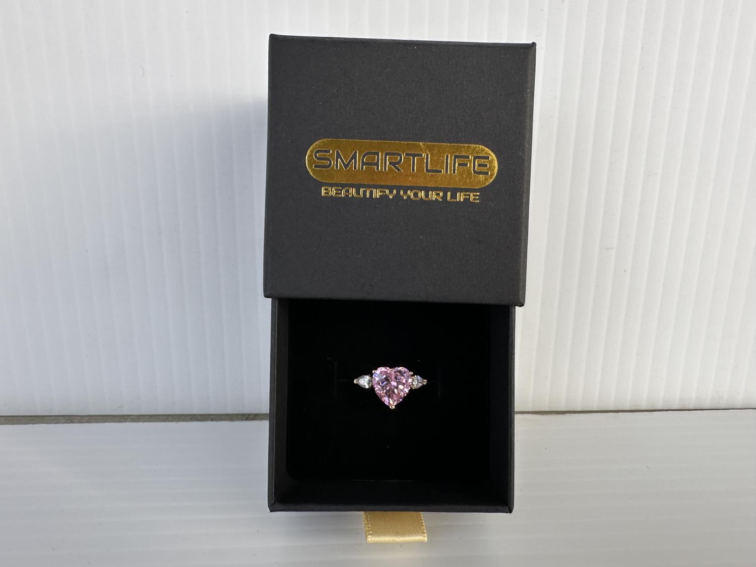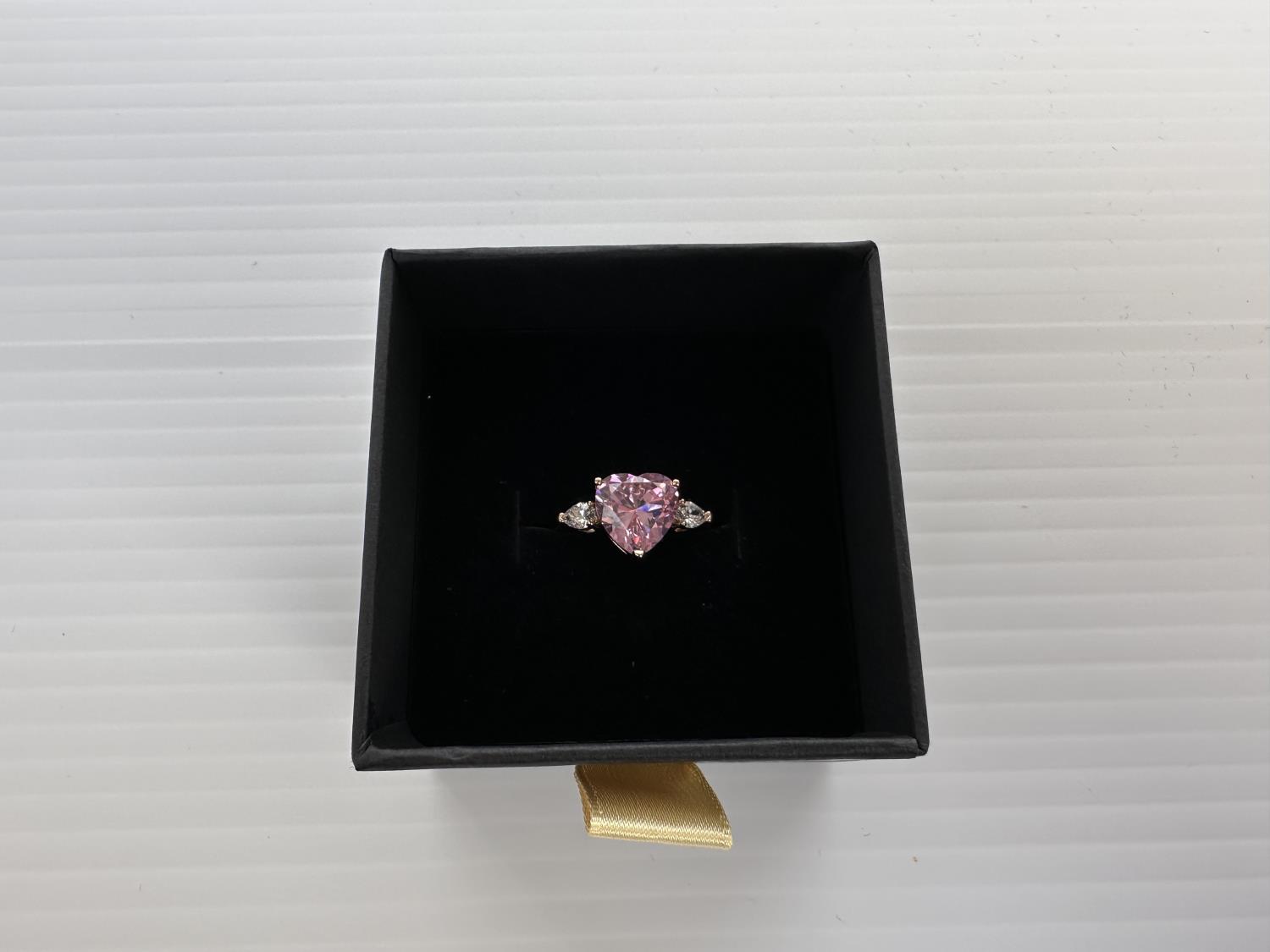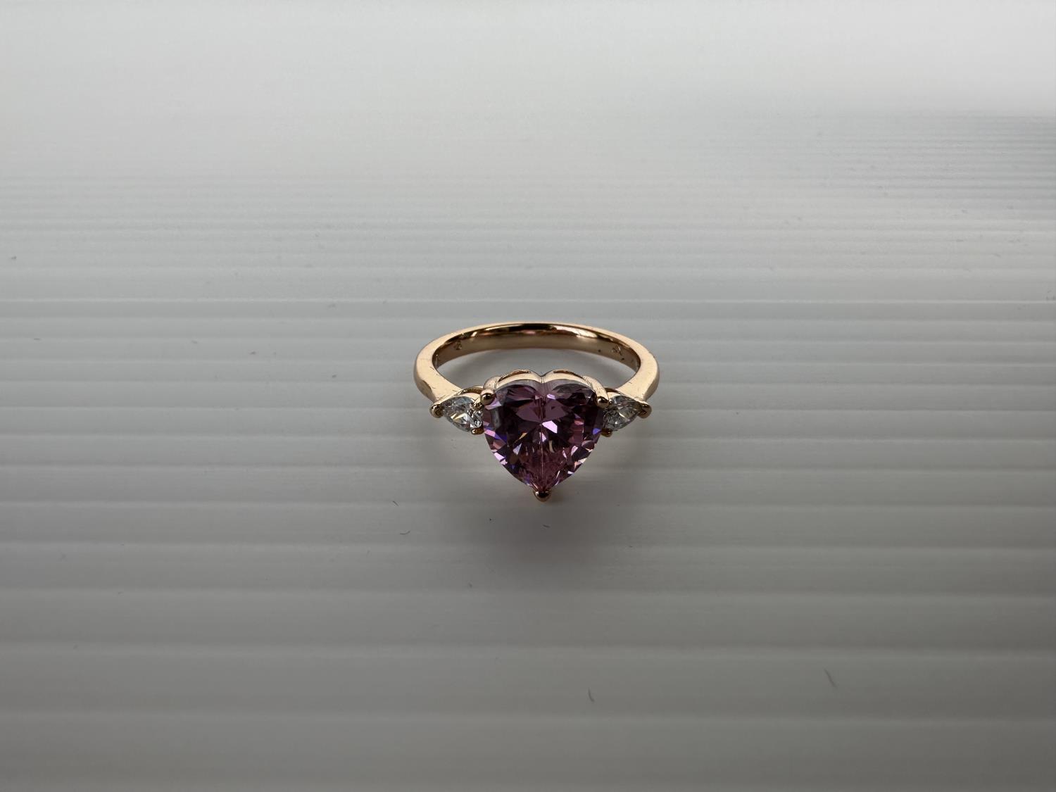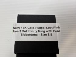 1360 Smartlife 18K Gold Plated 4.0 Ct Pink Heart Cut Trinity Ring with Pear Sidestones-Size 8.5 (Unused)