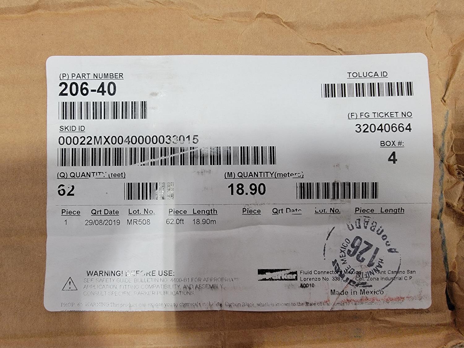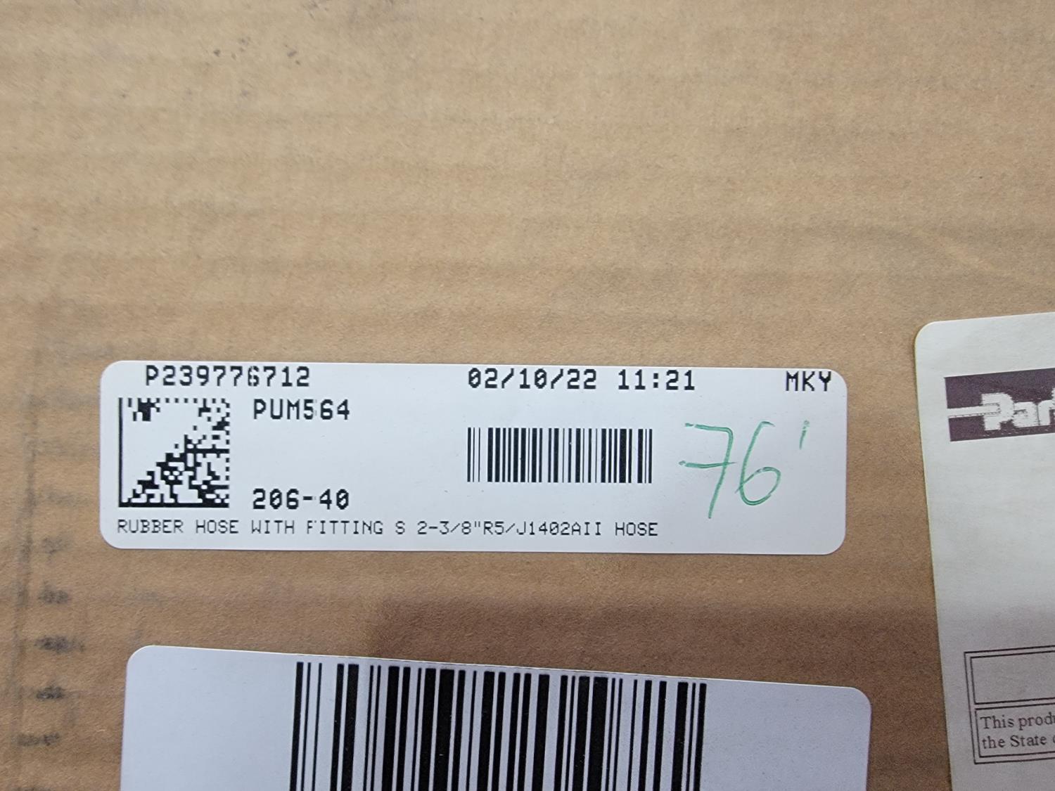 1081 76 Ft 2-3/8 Inch Fiber/Steel Braid Air Brake Hose (Unused)