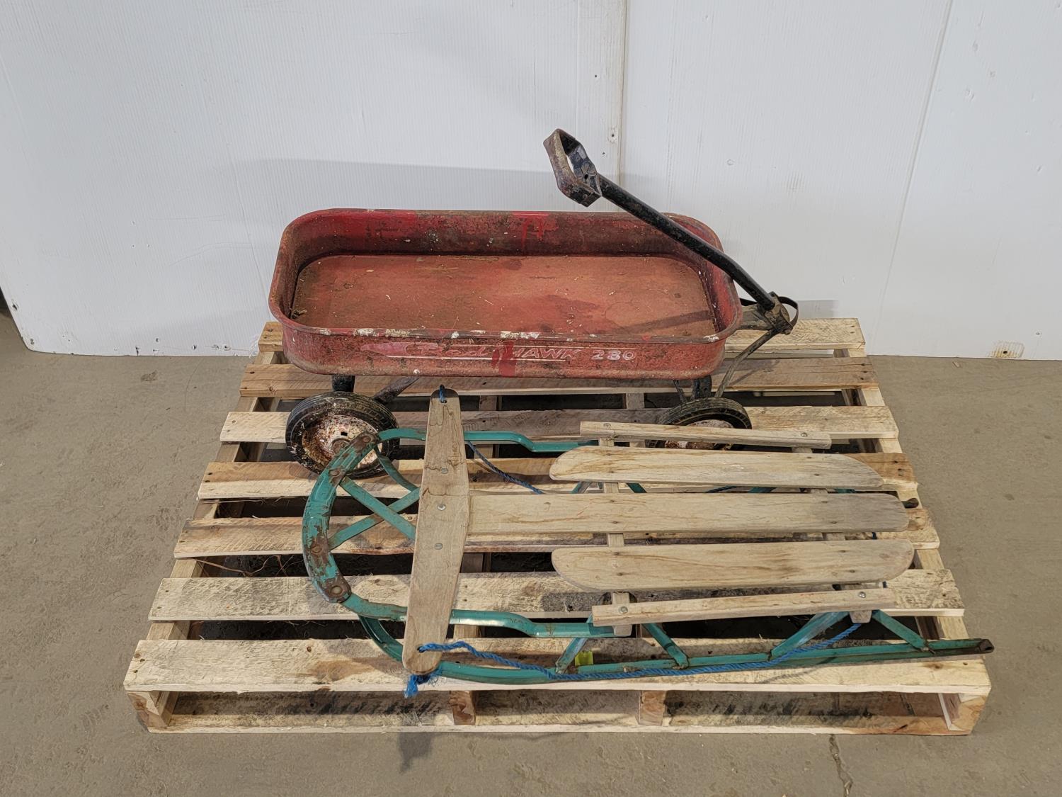 1086 Antique Children's Sleigh and Wagon