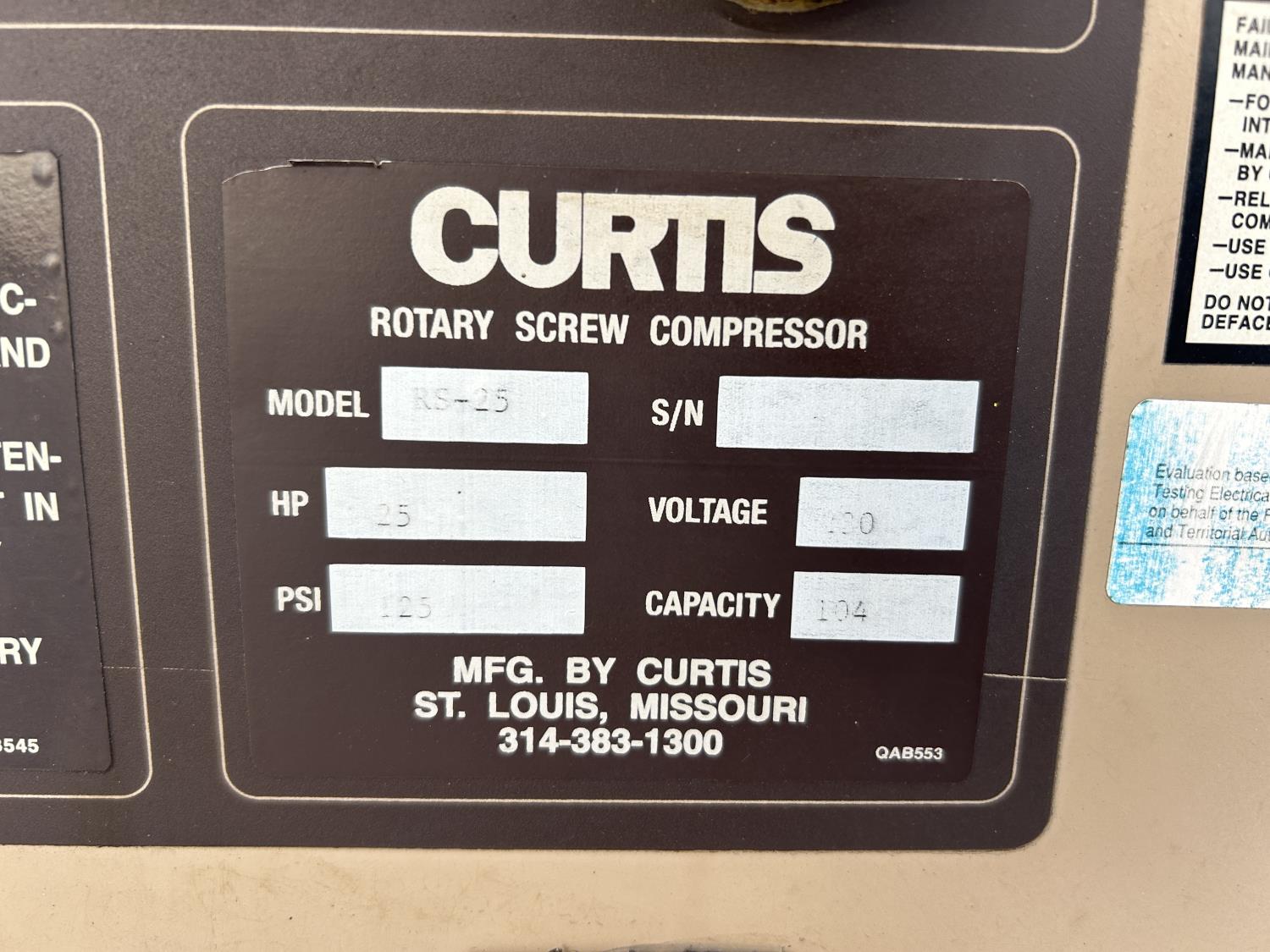 1402 Curtis RS-25 Rotary Screw Compressor