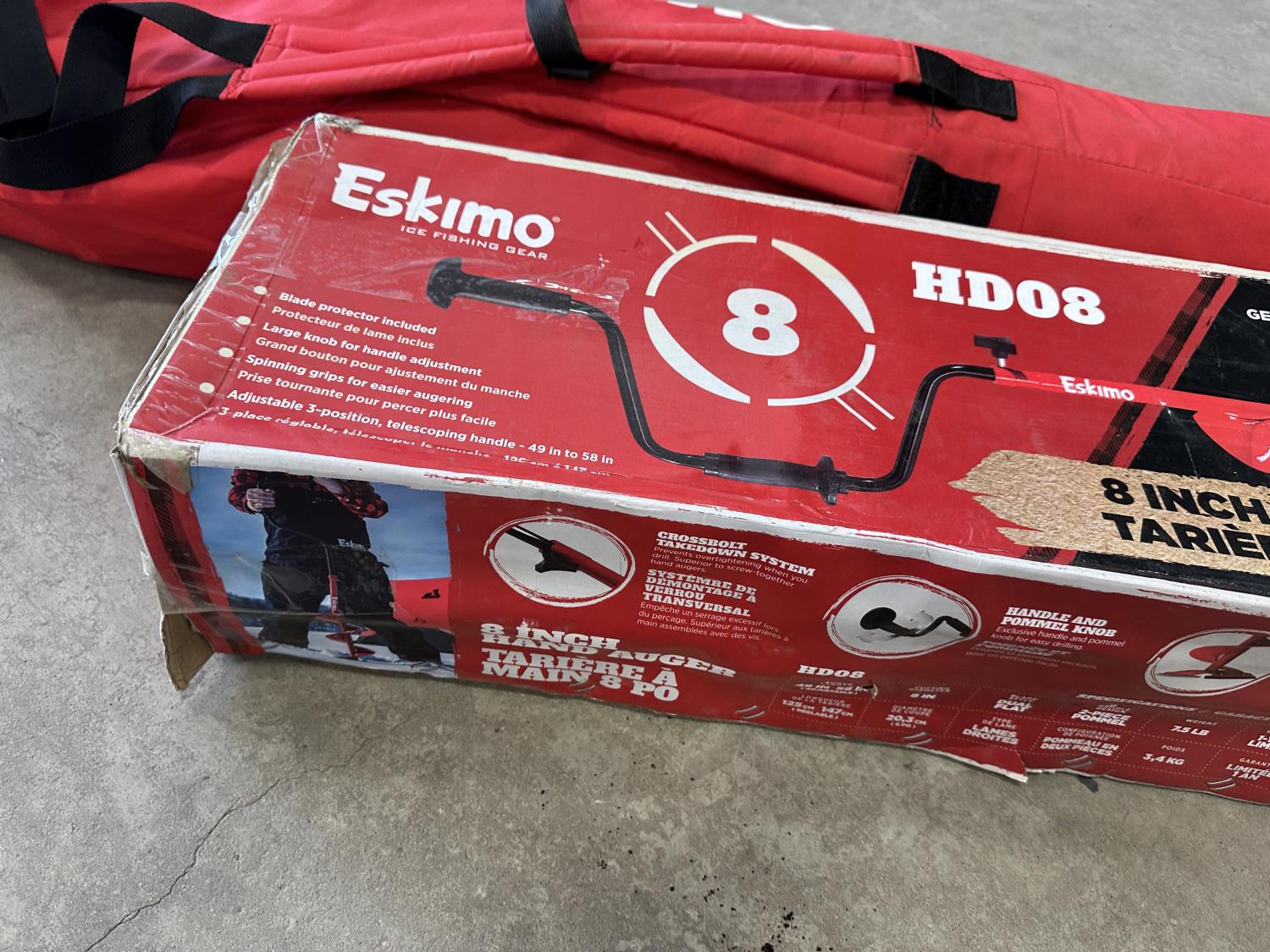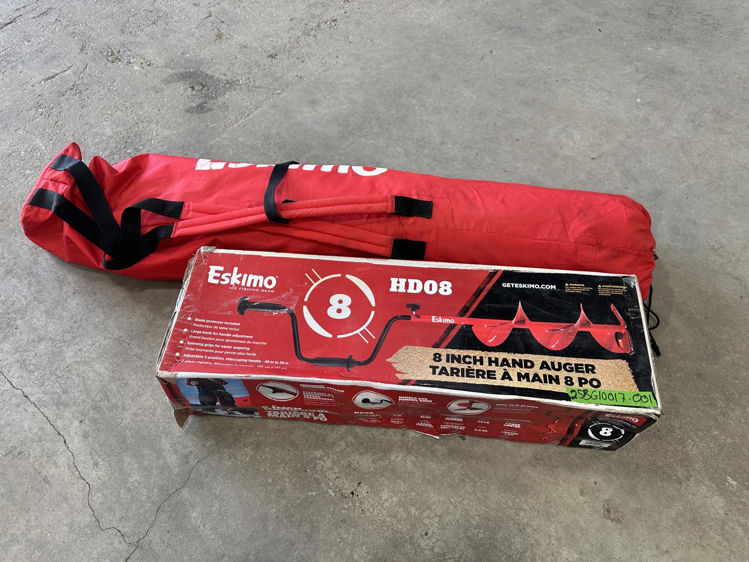 1038 Eskimo 3 Man Ice Fishing Tent and 8 Inch Manual Ice Auger