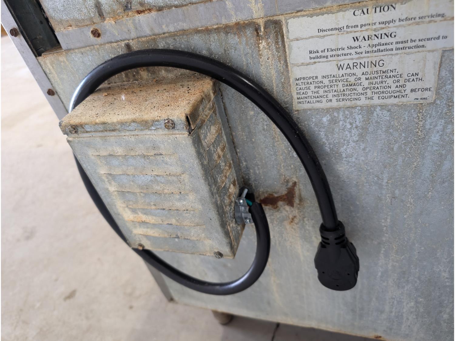 36 inch w x 32 inch d x 56 inch h, 240V